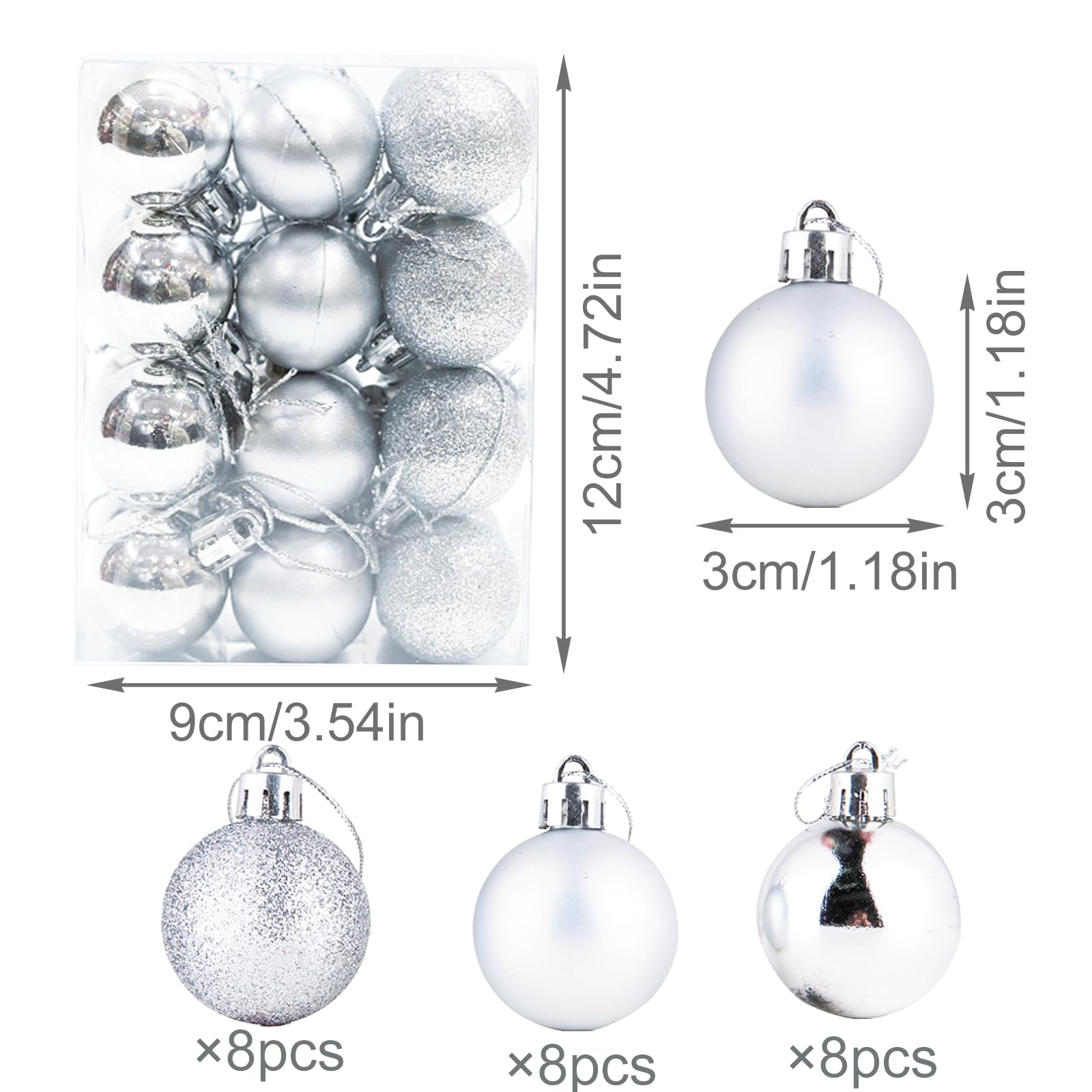 24 Weihnachtskugeln Silber 3cm - Christbaumschmuck Aus Bruchfestem Kunststoff