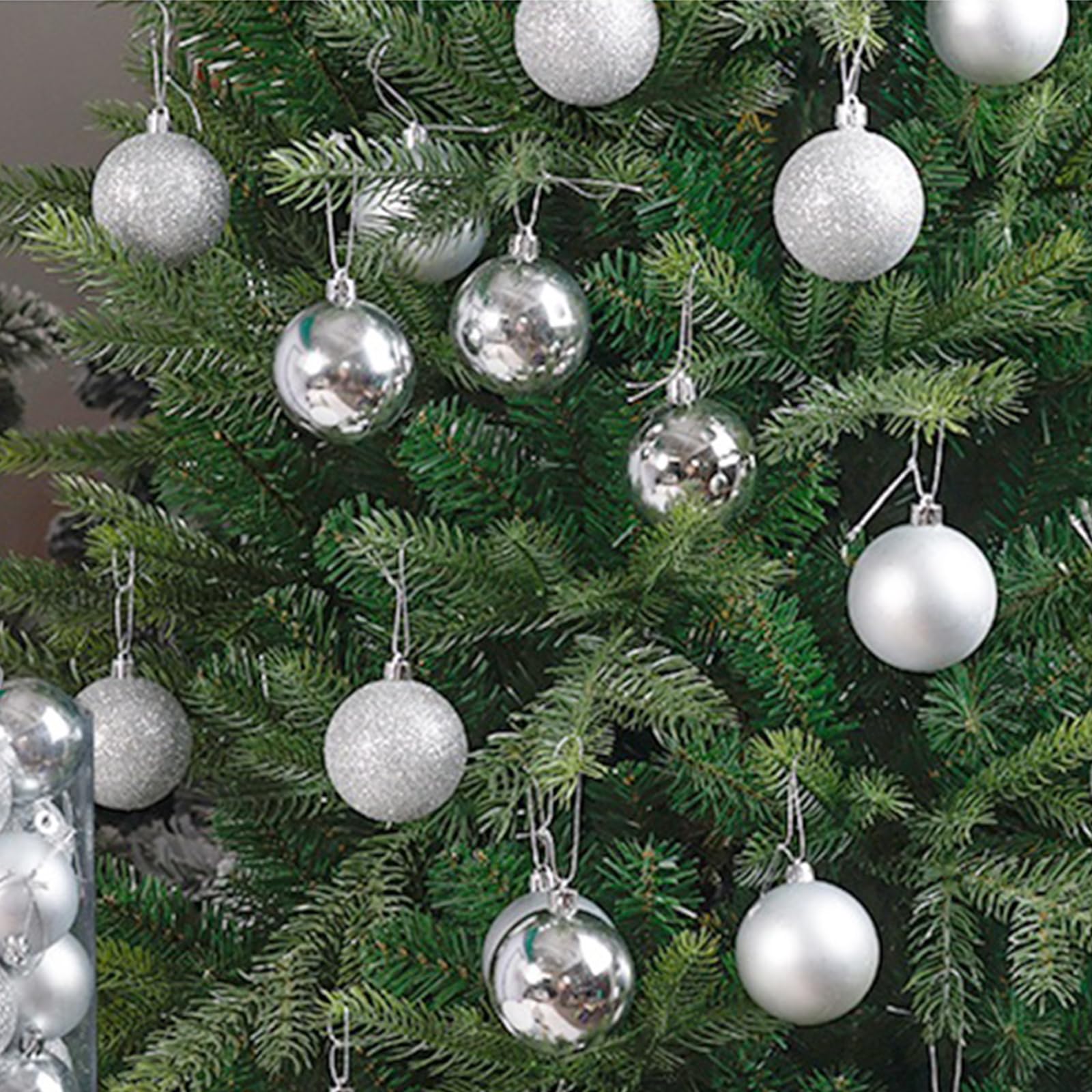 Oh, wie festlich! Diese 24 silbernen Weihnachtskugeln bringen sofort Weihnachtsstimmung in dein Zuhause. Mit 3 cm Durchmesser sind sie die perfekte Größe für einen üppig geschmückten Baum. Aus hochwertigem, bruchfestem Kunststoff - also absolut sicher für Familien mit Kindern und Haustieren. Keine Angst mehr vor splitternden Glas-Kugeln! Jede Kugel kommt bereits mit fertiger Aufhängeschnur, du musst sie nur noch an den Baum hängen. Besonders praktisch: Sie sind wetterfest und können auch draußen verwendet werden - perfekt für Terrasse, Garten oder Balkon. Die intensive silberne Farbe und die glänzende Oberfläche reflektieren das Licht wunderschön und sorgen für einen prachtvoll funkelnden Weihnachtsbaum. Nach den Feiertagen lassen sie sich platzsparend und sicher verstauen - bereit für viele Jahre Wiederverwendung. Ein komplettes Set für einen großen Baum oder mehrere Dekorationsorte im Haus. Einfach aufhängen und sich an der festlichen Atmosphäre erfreuen - weihnachtlicher geht's kaum!