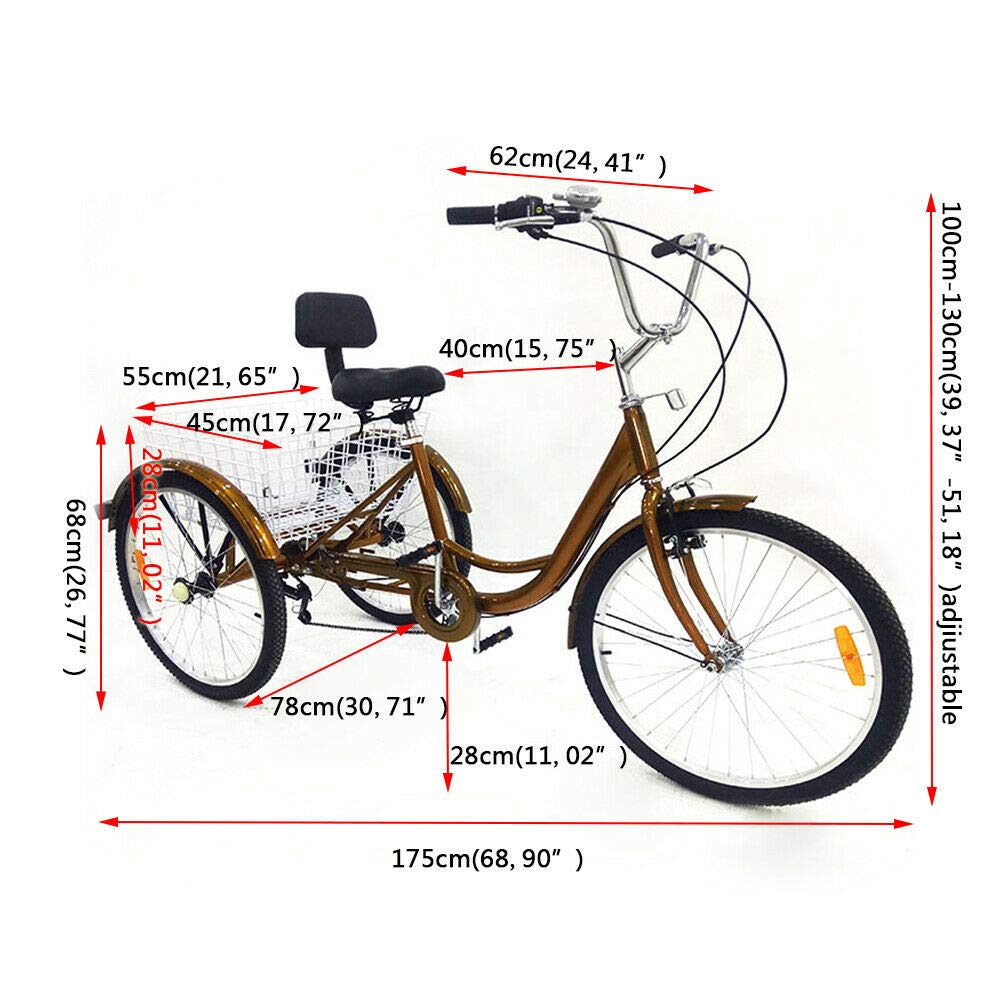 24 Zoll Dreirad Für Erwachsene - 6-Gang Cruiser Mit Einkaufskorb Für Senioren