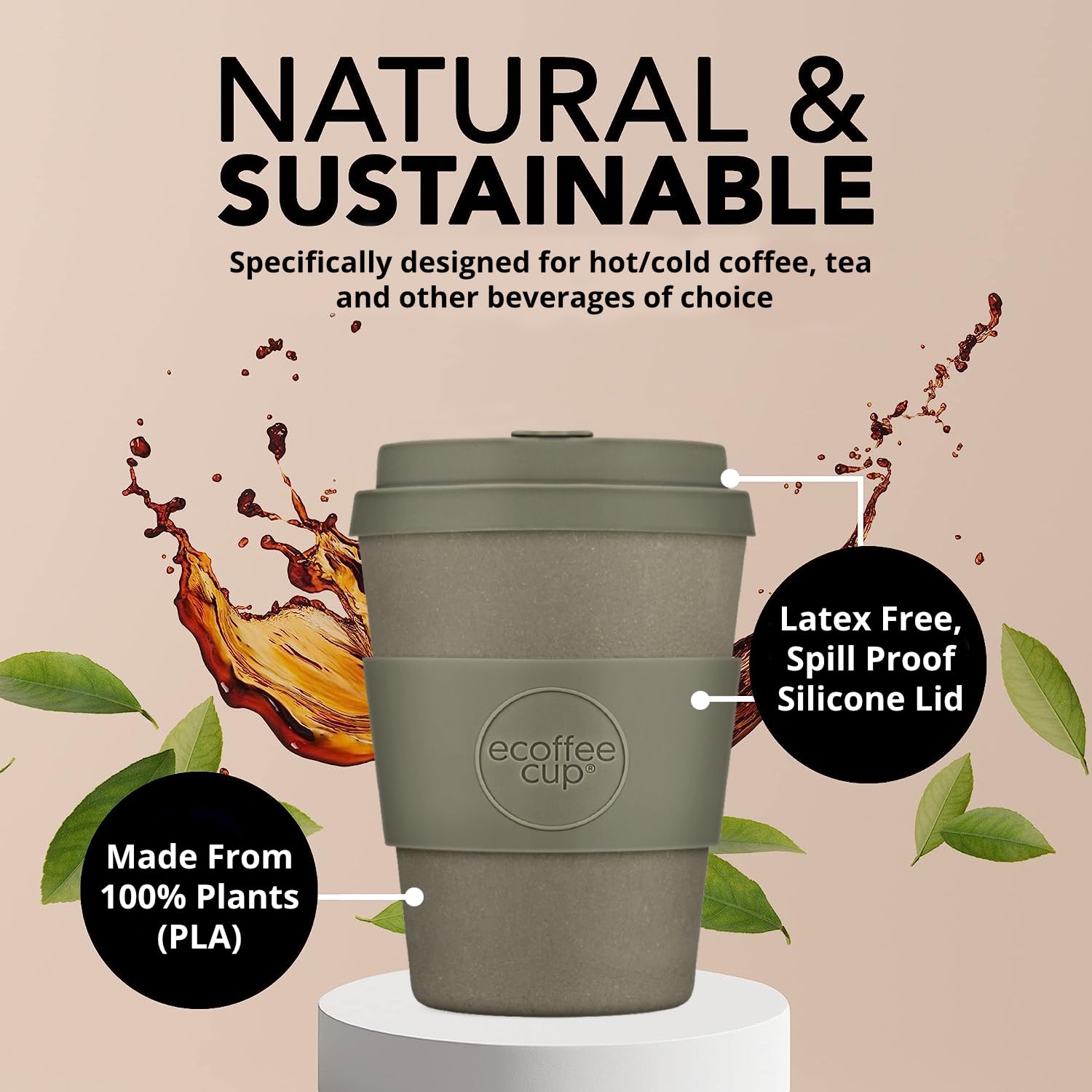 Ecoffee Cup 240ml Wiederverwendbare Kaffeetasse - 100% Pflanzlich Mit Silikondeckel