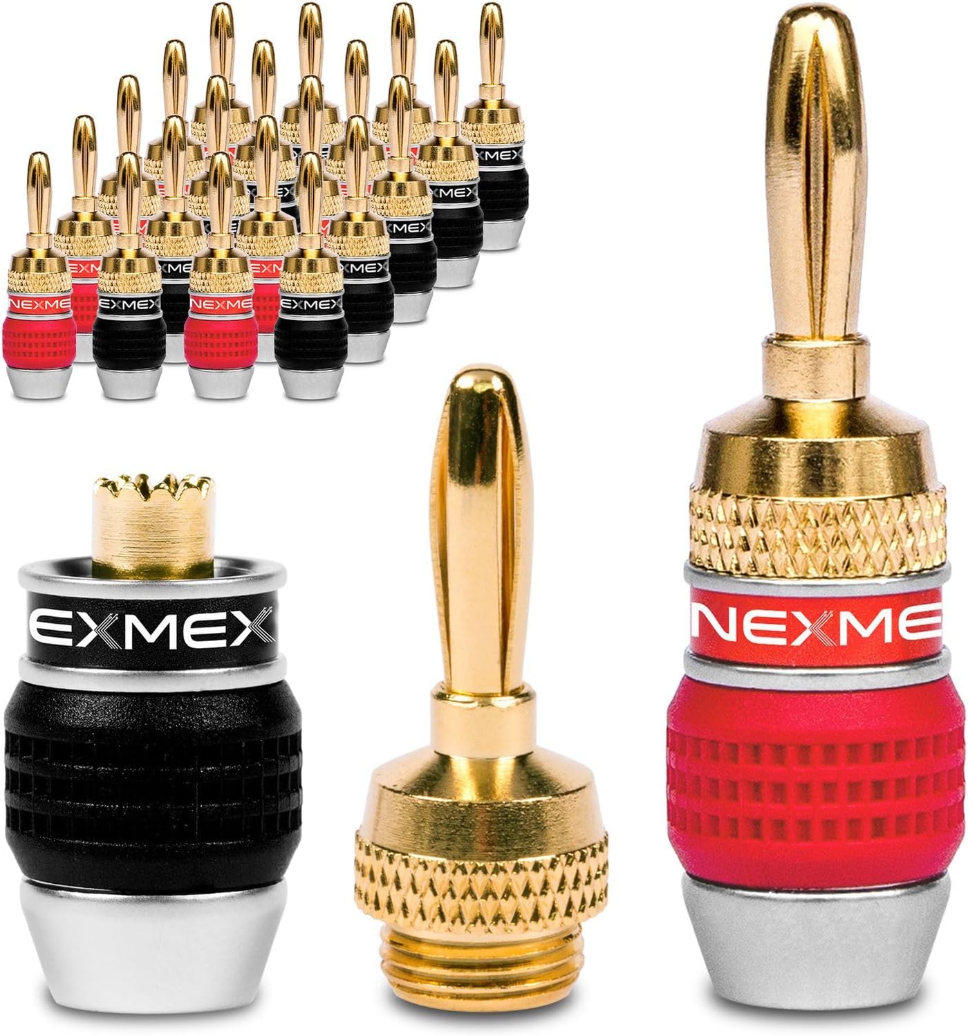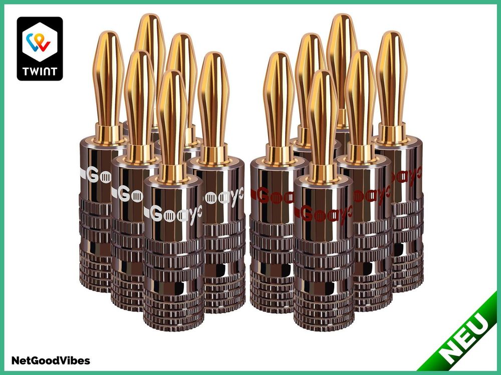 Endlich klare Töne! Diese hochwertigen Bananenstecker aus Messing mit 24K Vergoldung sorgen für perfekte Klangqualität in deiner Audioanlage. Korrosionsgeschützt und mit Doppelschrauben für extrem festen Halt. Passt zu Kabeln von 12-18 AWG. Einfache Installation ohne Löten! Ideal für Heimkino, Verstärker und Soundsysteme. In praktischer Farbcodierung (rot/schwarz). Lieferung: 2 Paare (4 Stück). Mit 1 Jahr Garantie. Upgrade deine Lautsprecherverbindungen - hör den Unterschied!