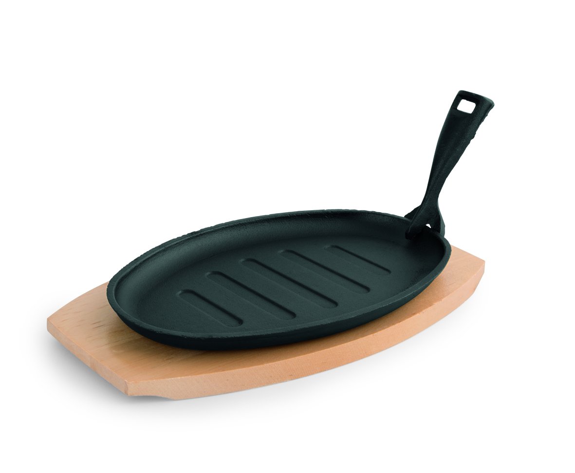Gusseisen Pfanne Oval 24x17,5cm | Servierpfännchen Mit Holzuntersetzer | Für Alle Herdarten