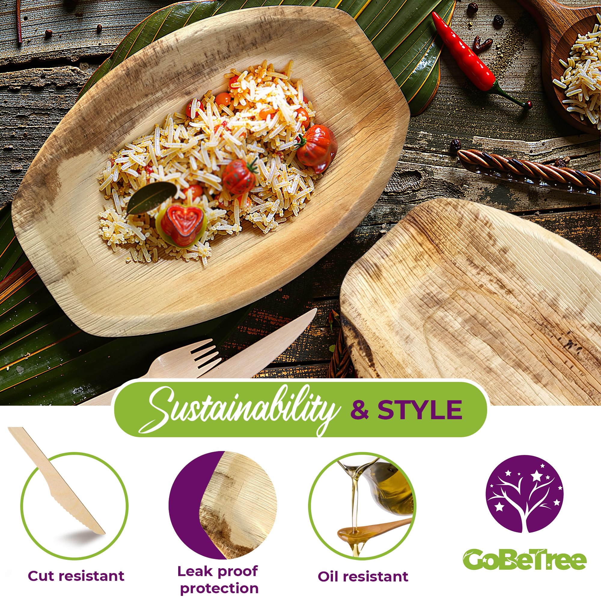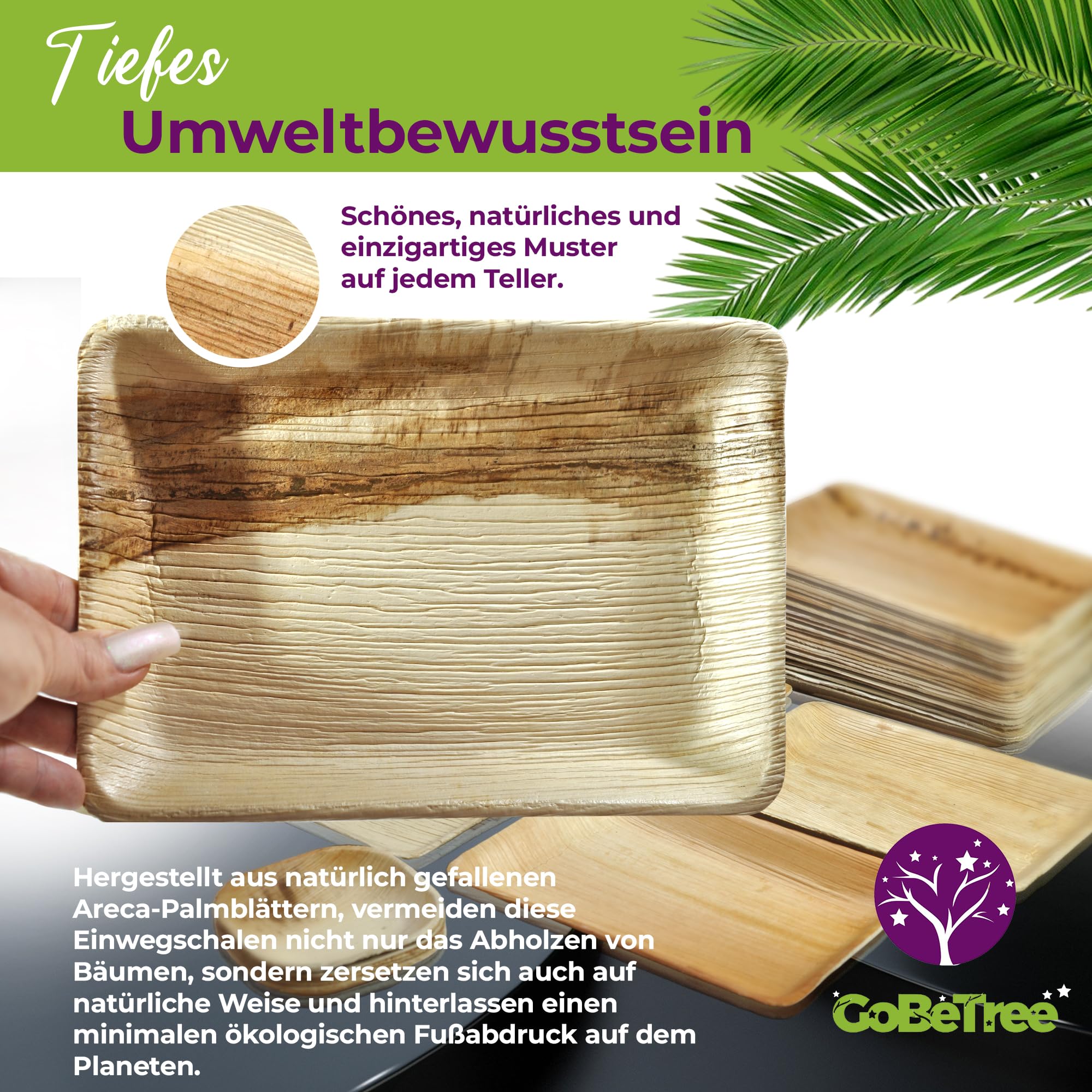30 Palmblatt Teller Set - 25 Rechteckig + 5 Quadratisch, Biologisch Abbaubar
