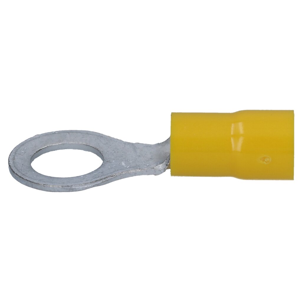 Perfekte Verbindungen für deine Elektroinstallation! Dieses 25-teilige Set mit Ringkabelschuhen in Gelb ist ideal für Querschnitte von 4-6mm². \\n\\nJeder Kabelschuh hat einen Lochdurchmesser von M6 (d2: 6,5mm, DØ: 6,7mm) und ist teilisoliert für zusätzliche Sicherheit. \\n\\nMaße: B: 12mm, F: 10,5mm, L: 29,5mm, E: 13mm - perfekt dimensioniert für präzise Arbeiten. \\n\\nHergestellt aus hochwertigem verzinntem Kupfer für optimale Leitfähigkeit und Korrosionsbeständigkeit. Ob in der Industrie, im KFZ-Bereich oder beim Heimwerken - diese Kabelschuhe halten was sie versprechen. \\n\\nEinfach zu crimpen und sicher zu montieren. Das komplette Set bietet ausreichend Teile für mehrere Projekte. Professionelle Qualität zum fairen Preis - dein Go-To-Set für alle Elektroarbeiten!