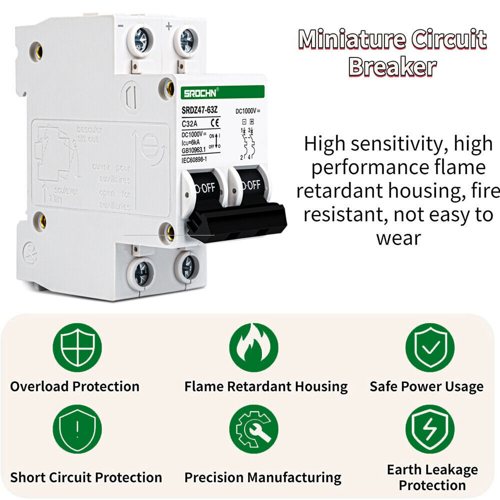 Dieser 2-polige DC-Sicherungsautomat (C65H-DC) schützt deine Photovoltaik-Anlage vor Überlast und Kurzschluss. Für 250V DC und 25A Nennstrom geeignet. Einfach auf der DIN-Schiene im Verteilerkasten montieren. Ideal für Solarpanel-, Wind- oder Hybridsysteme. Schnelles Schalten und zuverlässiger Lichtbogenschutz. Kann auch als Ein/Aus-Schalter genutzt werden. Für sicheren Betrieb deiner Gleichstromanlage – Made für Profis und Heimwerker!