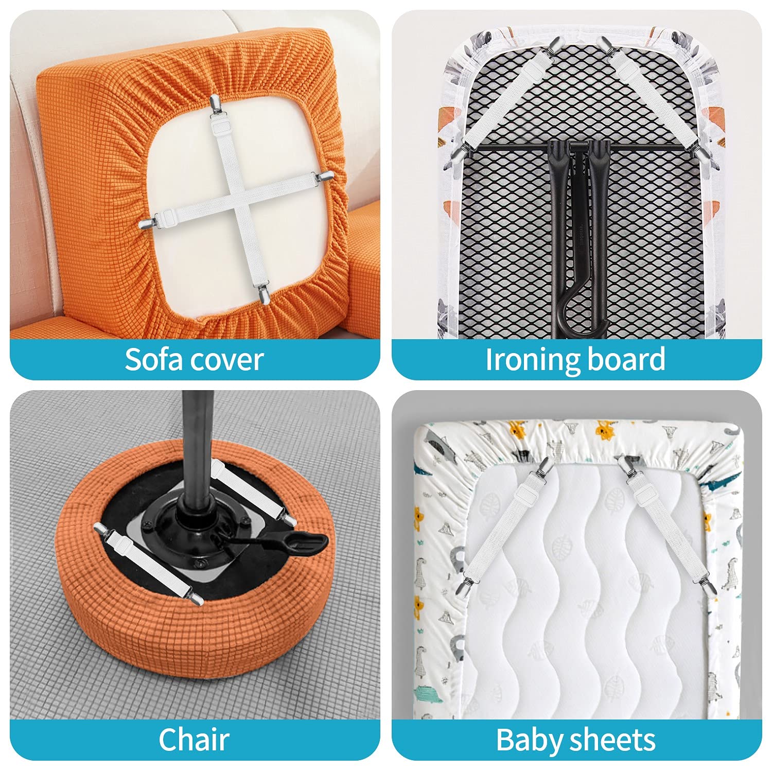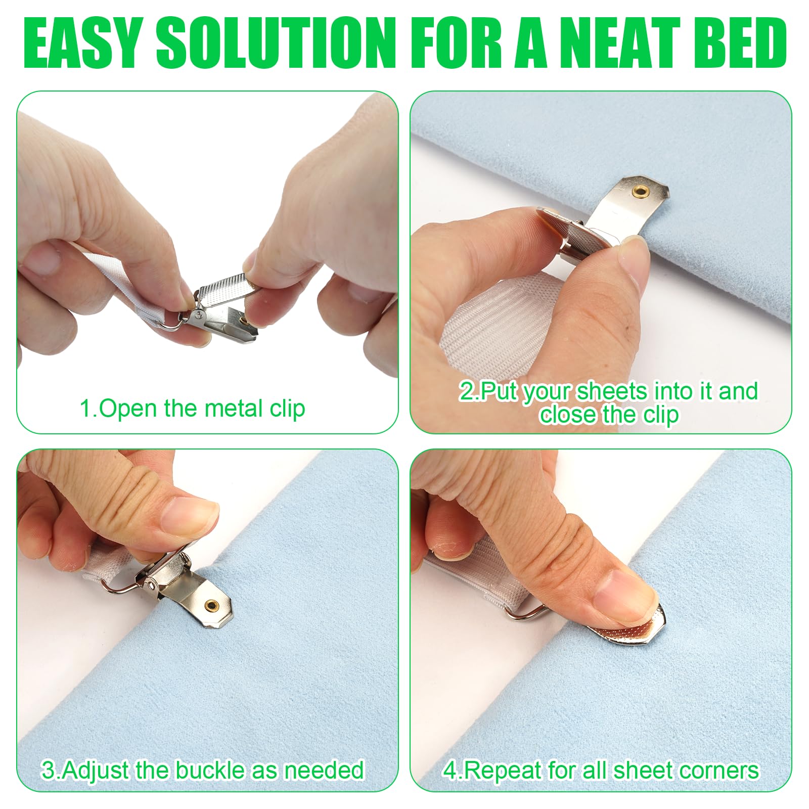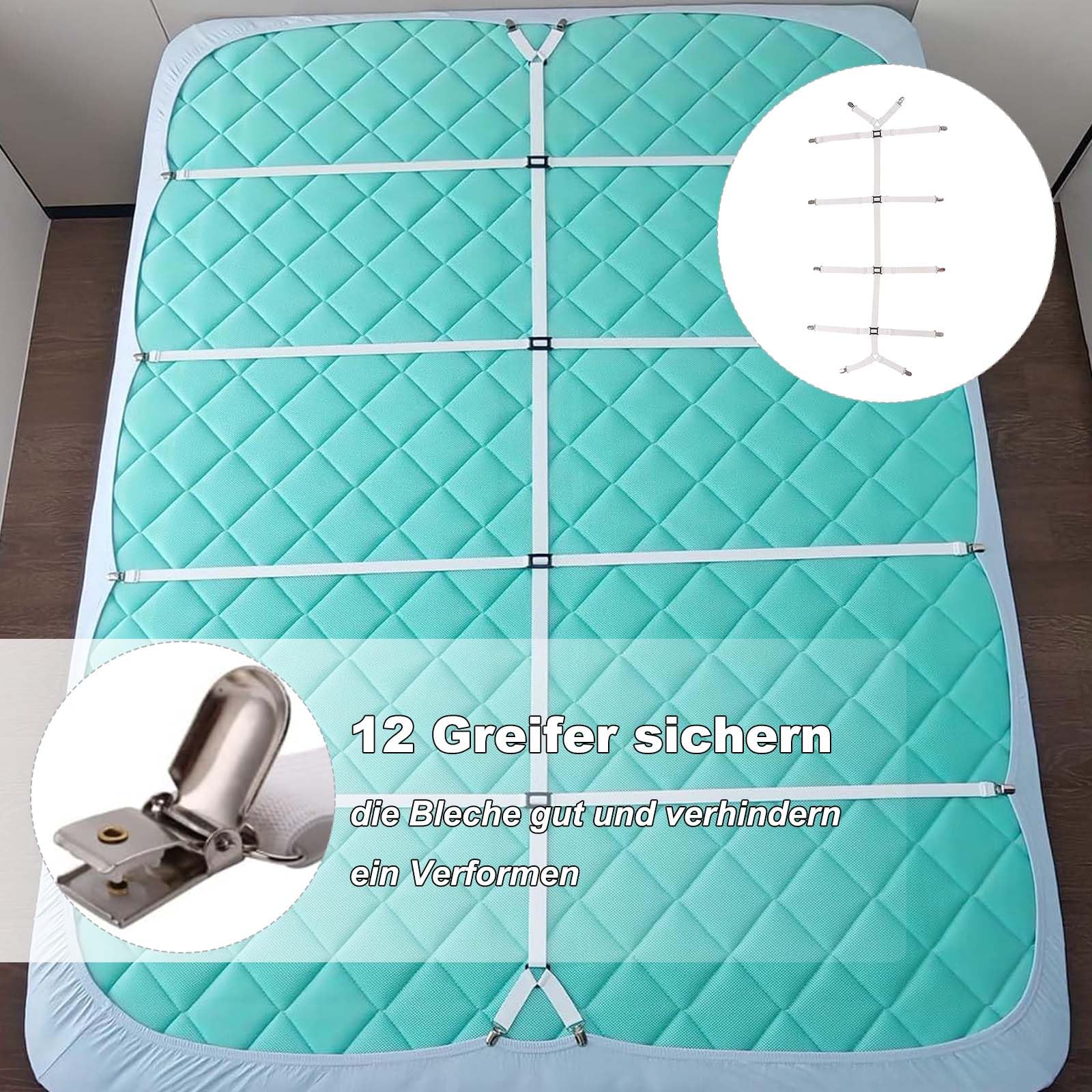 Bettlakenspanner Verstellbar - 12 Metallklammern, 120-250cm, Weiß - Hält Bettlaken Straff & Rutschfest