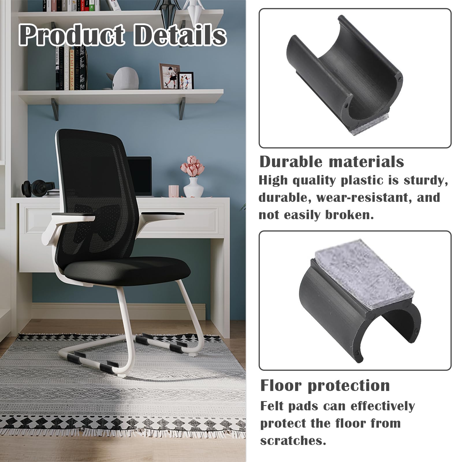 Endlich keine kratzenden Stuhlbeine mehr! Diese 20 Stuhlgleiter von sind perfekt für deine Freischwingerstühle. Mit 25mm Durchmesser passen sie auf die meisten gängigen Stuhlbeine. Die grauen Filzgleiter schützen deine Böden optimal - egal ob Laminat, Parkett, Fliesen oder Marmor! Einfach auf die Stuhlbeine drücken, schon sind sie montiert - komplett ohne Werkzeug! Der dicke Filz reduziert nicht nur Geräusche beim Verschieben, sondern verhindert auch lästiges Wackeln und Kippeln. Aus robustem Kunststoff mit hochwertigem Filz - made to last! Perfekt fürs Büro, Wohnzimmer oder Esszimmer. Damit machst du deine Möbel leise und bodenschonend - und deine Nachbarn werden's dir danken! Einfach genial für mehr Komfort und weniger Ärger mit kratzenden Stühlen!