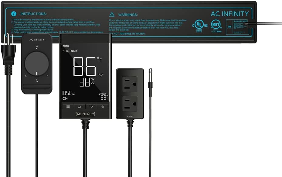 Perfekte Bedingungen für deine Sämlinge! Diese professionelle Heizmatte von AC Infinity beschleunigt die Keimung und sorgt für gleichmäßige Wärme von 25x50cm. Mit innovativer Ferninfrarot-Technologie für sanfte, gleichmäßige Wärmeverteilung ohne Verbrennungsgefahr. Der einstellbare Regler ermöglicht präzise Temperaturkontrolle ohne ständiges Ein-/Ausschalten. UL und MET zertifiziert für maximale Sicherheit, IP-67 wasserdicht entlang aller Nähte. Aus robustem 4-lagigem PVC, flexibel und leicht zu reinigen. Inklusive wasserabweisendem Aufbewahrungsbeutel. Perfekt für Indoor-Gartenbau, Hydrokultur und Saatgut-Keimung. Deine Pflanzen werden es dir danken!