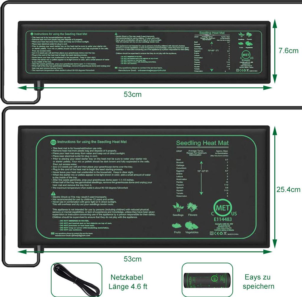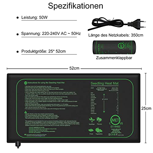 50W Heizmatte Für Pflanzen - 25x52,5cm Mit Thermostat 20-30°C