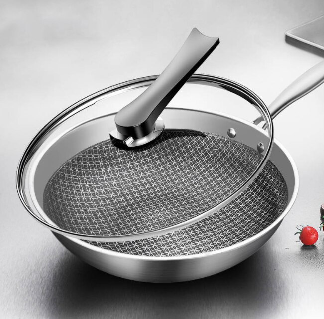 TOYANDONA Edelstahl Wok Pfanne - 26cm Doppelgriff Topf Für Küche