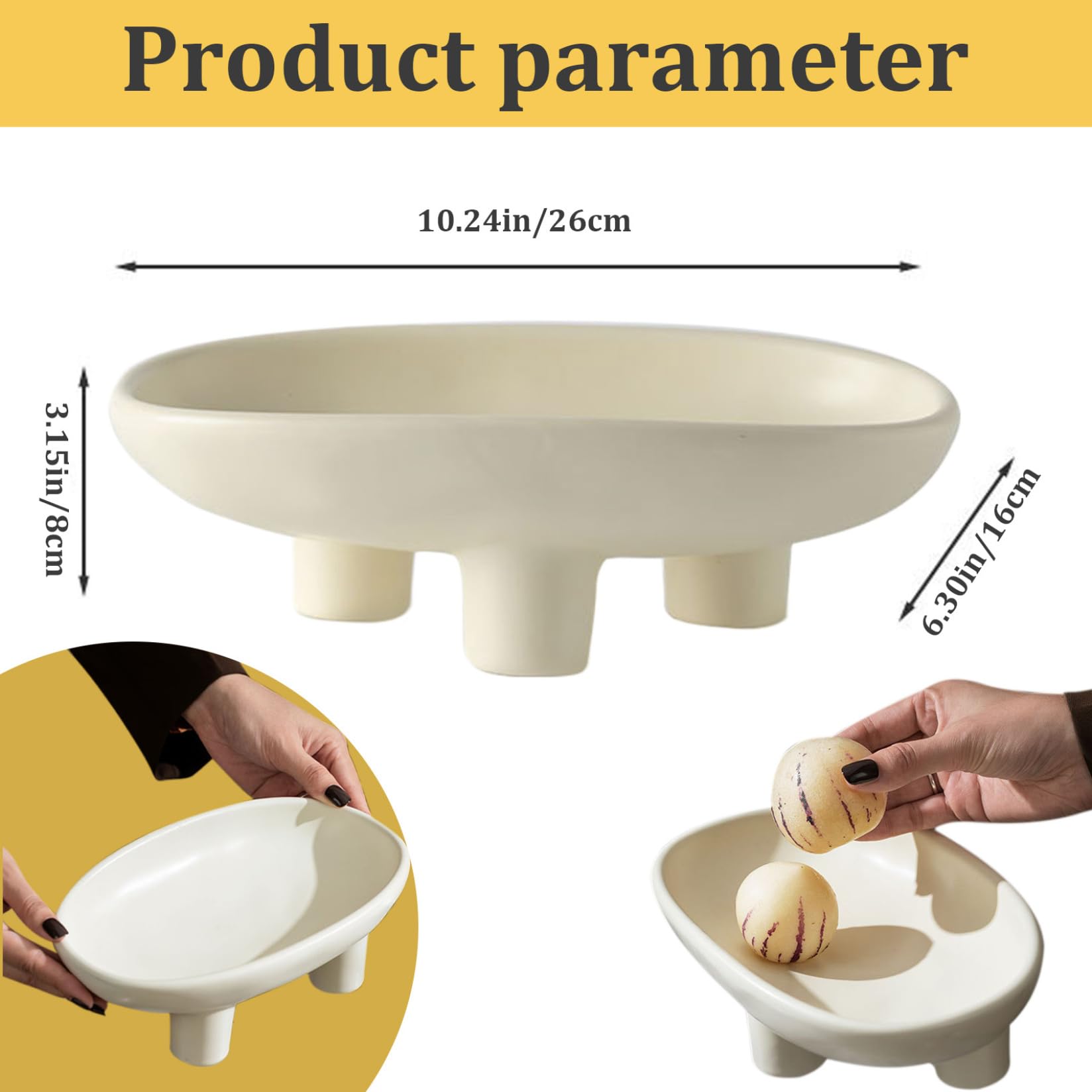 Diese weiße Keramik-Obstschale ist ein echter Hingucker in jeder Küche! Mit 26cm Länge, 16cm Breite und 8cm Höhe bietet sie genug Platz für Obst, Snacks oder Brot. Das elegante 3-Bein-Design verleiht ihr einen modernen, aber klassischen Look.