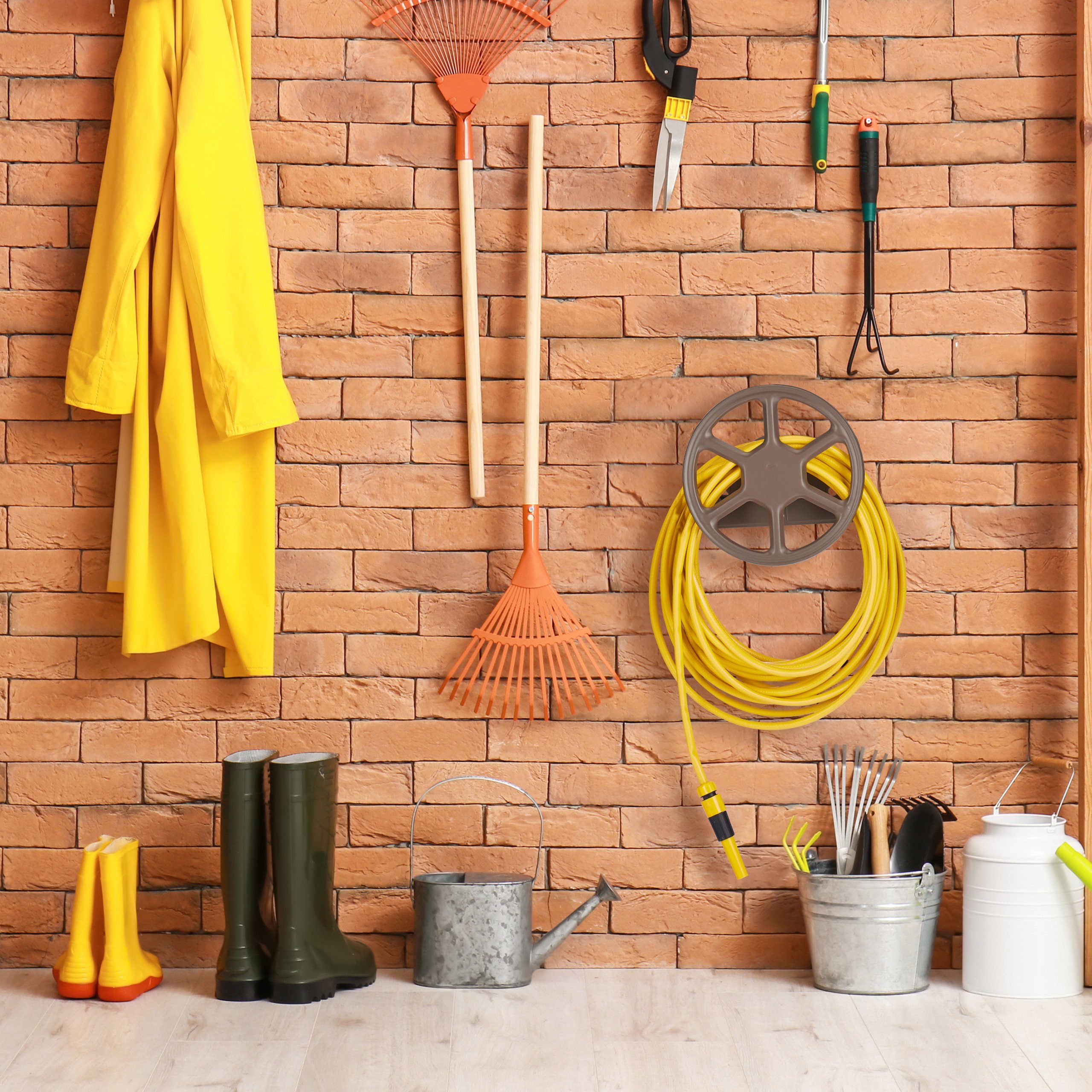 Die Montage ist super einfach - mit den im Lieferumfang enthaltenen Schrauben und Dübeln hast du die Halterung im Nu an der Wand befestigt. Das clevere Profildesign ermöglicht es dir, den Schlauch sogar teilweise abgerollt zu verwenden, ohne ihn komplett abnehmen zu müssen. Perfekt für Garage, Gartenhaus oder die Außenwand!