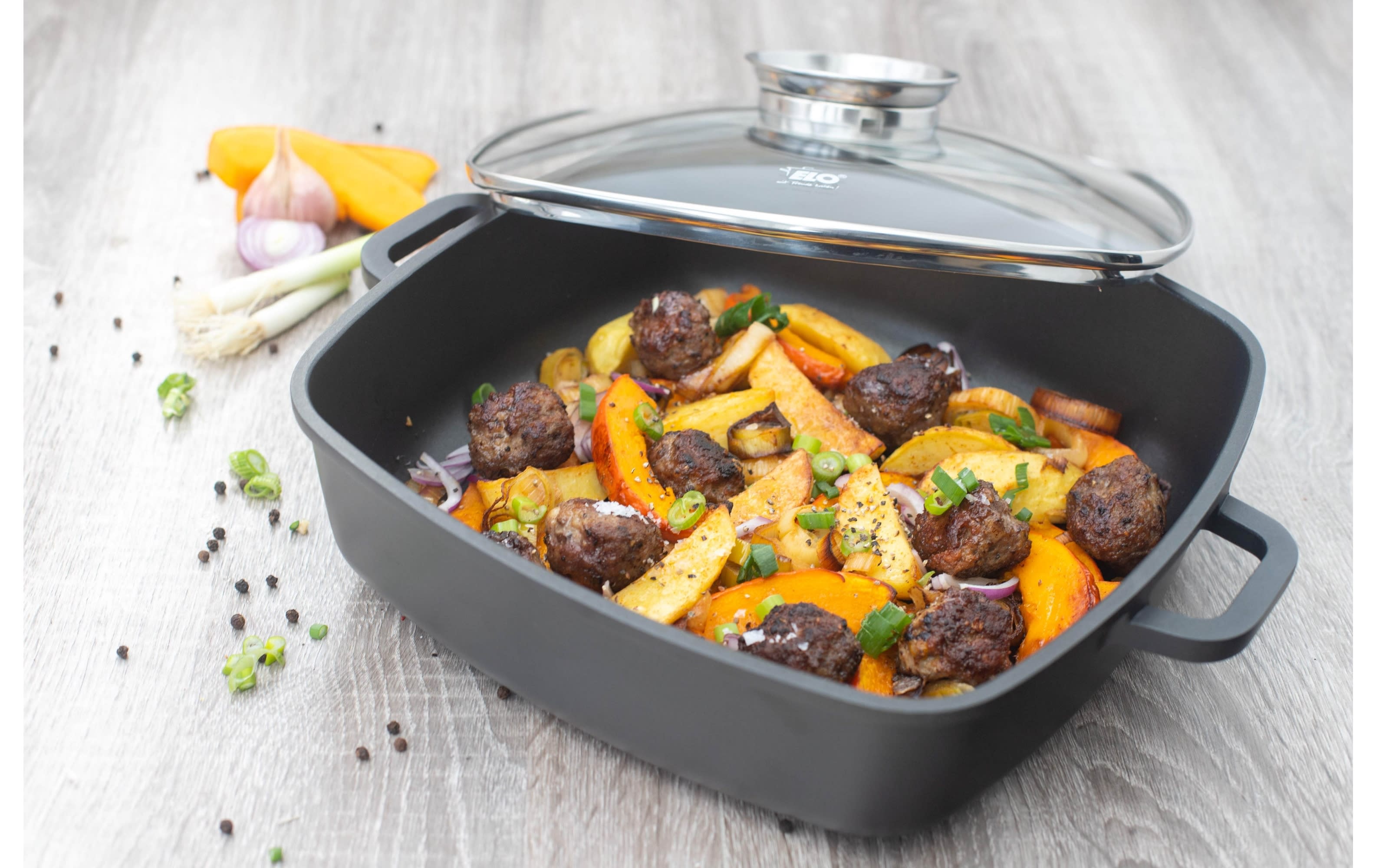 Kochen, backen, servieren - alles in einem! Diese hochwertige Woll Servierpfanne im praktischen 28x28cm Format ist ein echter Allrounder. Mit 8mm Thermoboden für gleichmäßige Hitzeverteilung und Titan-Hartgrundbeschichtung für ausgezeichnete Antihaft-Eigenschaften. Die seitlichen Griffe sind ofenfest bis 250°C, der Sicherheitsglasdeckel passt perfekt. PFOA-frei, schnitt- und abriebfest. Kommt im schicken Geschenkkarton - ideal für alle, die gerne kochen und backen!