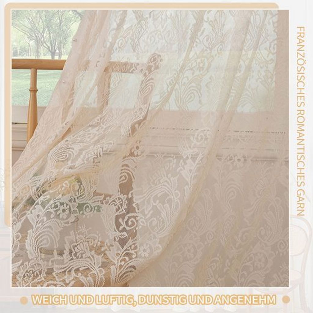So romantisch diese Spitzen-Vorhänge! 2er Set mit je 150x200cm - perfekt für normale Fenster. Aus hochwertigem Polyester - weich fallend und langlebig. Mit zarten Blumen-Stickereien - total verspielt und elegant. Lichtdurchlässig - lässt sanftes Licht herein aber schützt die Privatsphäre. Im Landhausstil - passt zu vielen Einrichtungen. Für Wohnzimmer, Schlafzimmer, Küche oder als Hochzeitsdeko. Einfach aufhängen - bildet von selbst schöne Falten. Macht jeden Raum sofort gemütlicher und eleganter. Wenn du also deine Fenster verschönern willst, sind diese Vorhänge genau das Richtige. Einfach bestellen und sich an der Romantik erfreuen!