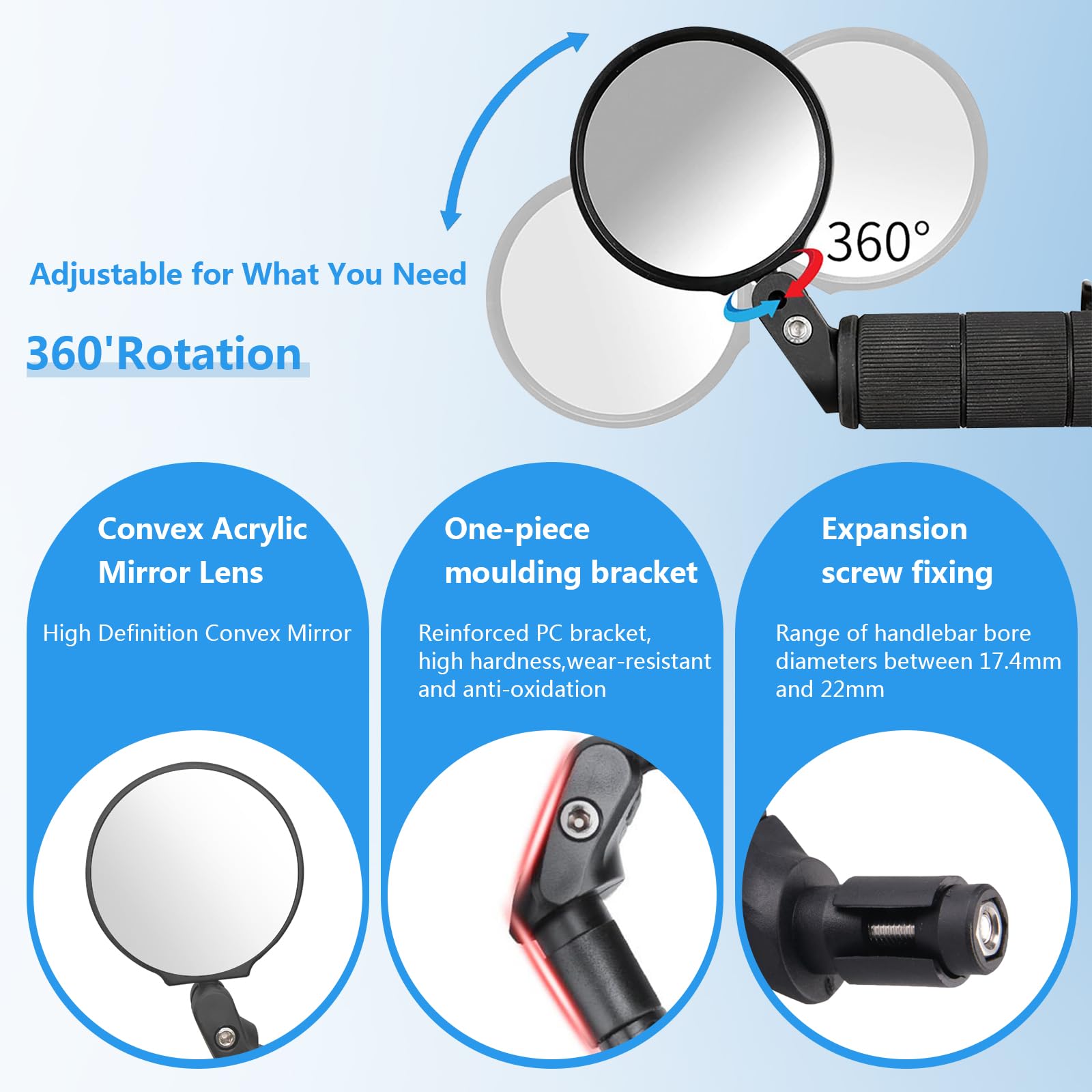 Fahrrad Spiegel 2er Set - 360° Drehbarer Rückspiegel Für Lenker 17,4-22mm