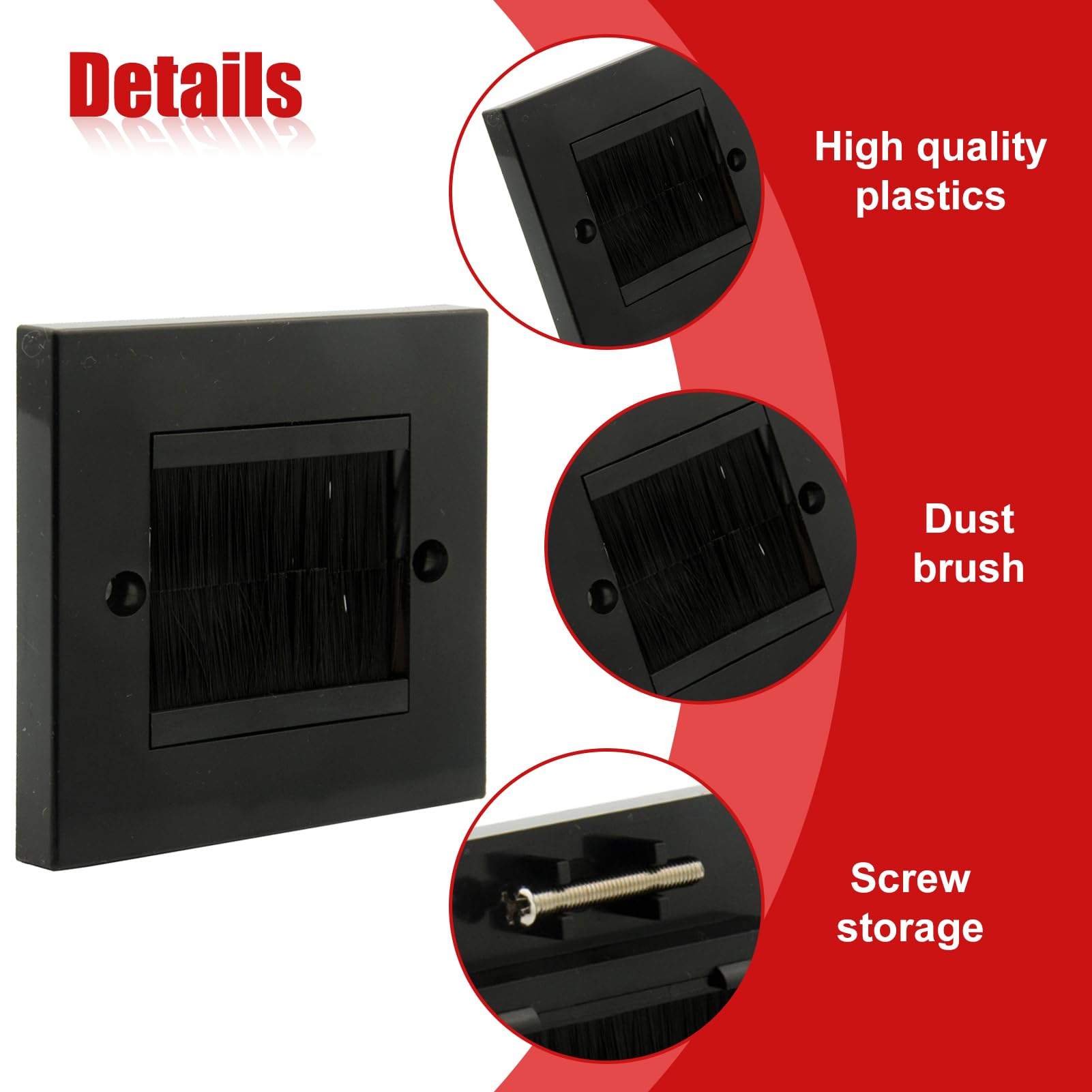 Schluss mit kabelsalat! Diese Wanddosen von Batheidon machen deine Wände wieder clean. Einfach die Kabel von TV, Lautsprechern oder Internet durchstecken – die Bürstenabdeckung hält Staub draußen und sieht dabei noch gut aus.