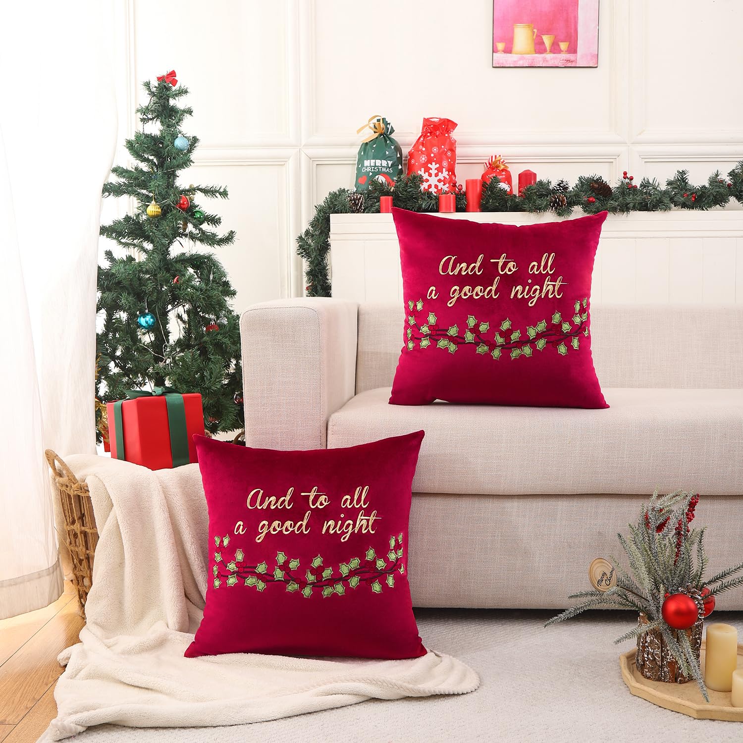Herfair Weihnachtskissen 45x45cm 2er Set - Baum & Stern Stickerei