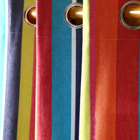 Nautische Vorhänge 2er Set - Blau Rot Streifen Blickdicht 140x245 Cm