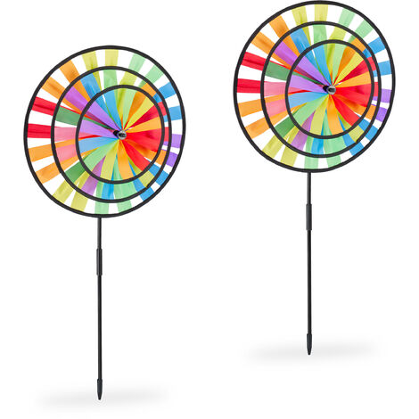Com-four Windrad 2er Set - Bunte Windmühle Für Garten Und Balkon