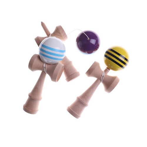 Kendama - der japanische Geschicklichkeitsklassier für Groß und Klein! Dieses 2er-Set kommt in schwarz und blau und ist perfekt für alle, die ihre Hand-Augen-Koordination trainieren wollen. Das Spiel besteht aus einem Holzschwert mit drei Schalen und einer Spitze, an der ein Ball mit Loch befestigt ist. Das Ziel: Den Ball in eine der Schalen oder auf die Spitze befördern! Klingt einfach? Ist es aber nicht - und genau das macht den Reiz aus! Das Kendama ist aus Buchenholz gefertigt, der Ball hat einen Durchmesser von 6 cm, und das ganze Spiel ist 18,5 cm hoch. Ideal für Kinder ab 8 Jahren, aber auch Erwachsene haben damit riesigen Spaß! Du kannst es überall mitnehmen - im Park, im Garten, auf Reisen oder einfach in der Pause. Es gibt unzählige Tricks und Kombinationen zu lernen, von einfach bis super schwer. So wird dir garantiert nicht langweilig! Kendama fördert die Konzentration, Geduld und motorischen Fähigkeiten - und macht nebenbei noch richtig Laune. Perfekt also als Geschenk für Kinder, die mal was anderes ausprobieren wollen, oder für Erwachsene, die ihr Reaktionsvermögen testen möchten. Schnapp dir ein Kendama und werd zum Trickser-Profi!