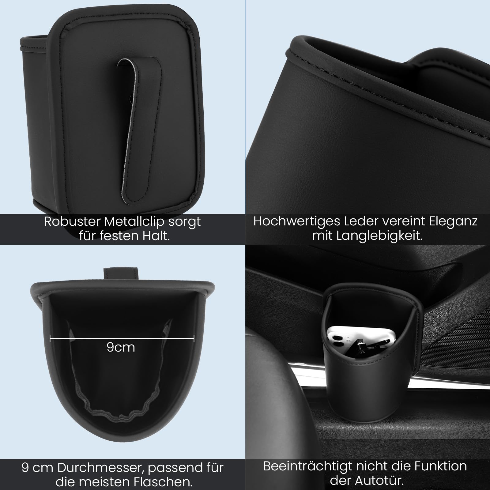 Auto Getränkehalter 2er Set - Clip-on Für Türtasche, Schwarz PU-Leder