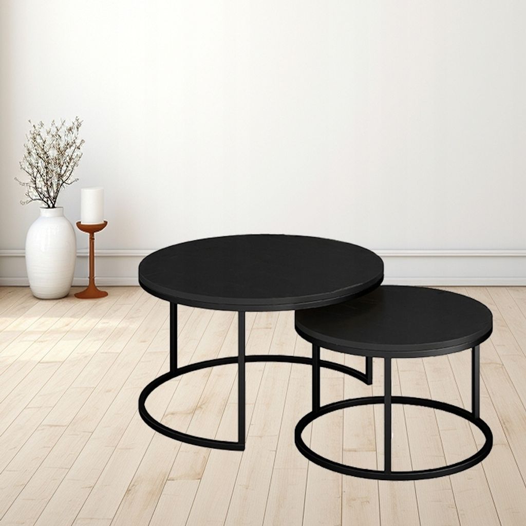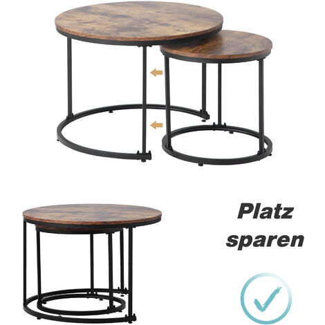 2er Set Couchtische Rund - Stapelbare Beistelltische Industriedesign Grau