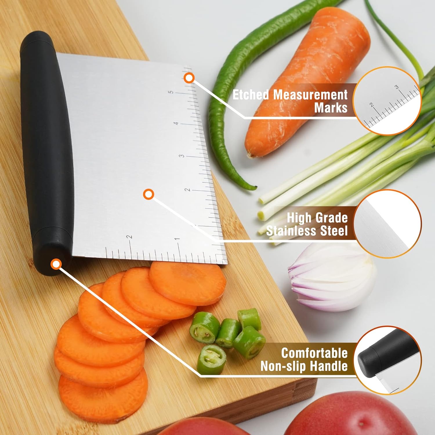 Teigschaber & Zerkleinerer 2er Set - Edelstahl Mit Messskala Für Pizza & Gebäck