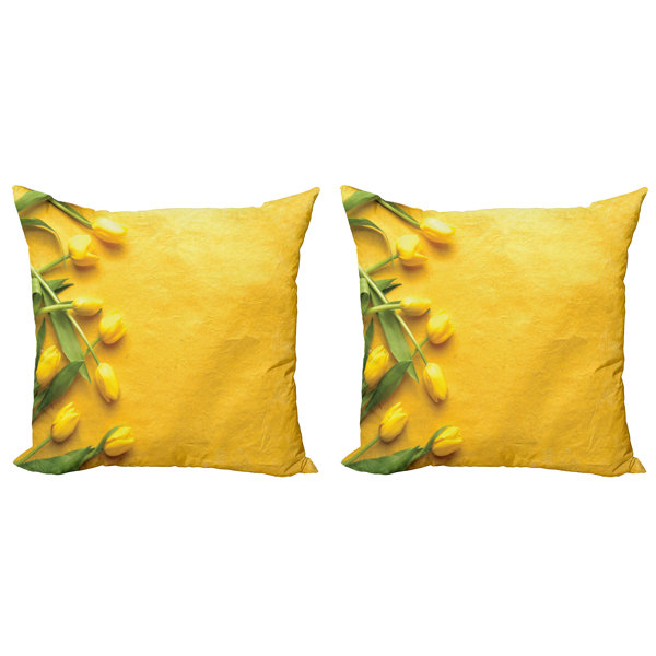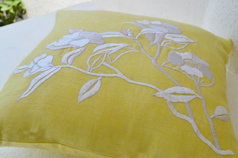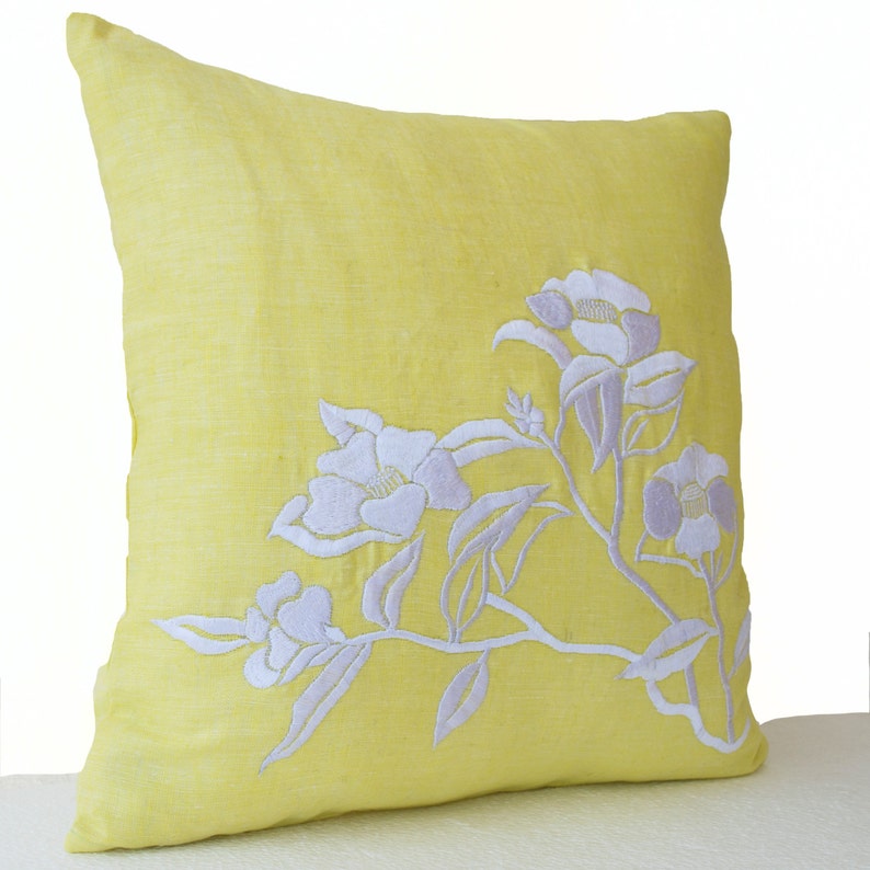 2er Set Kissenbezüge 60x90 Cm Gelb Mit Blumen-Muster - Leinen Deko Kissen Für Sofa Und Wohnzimmer