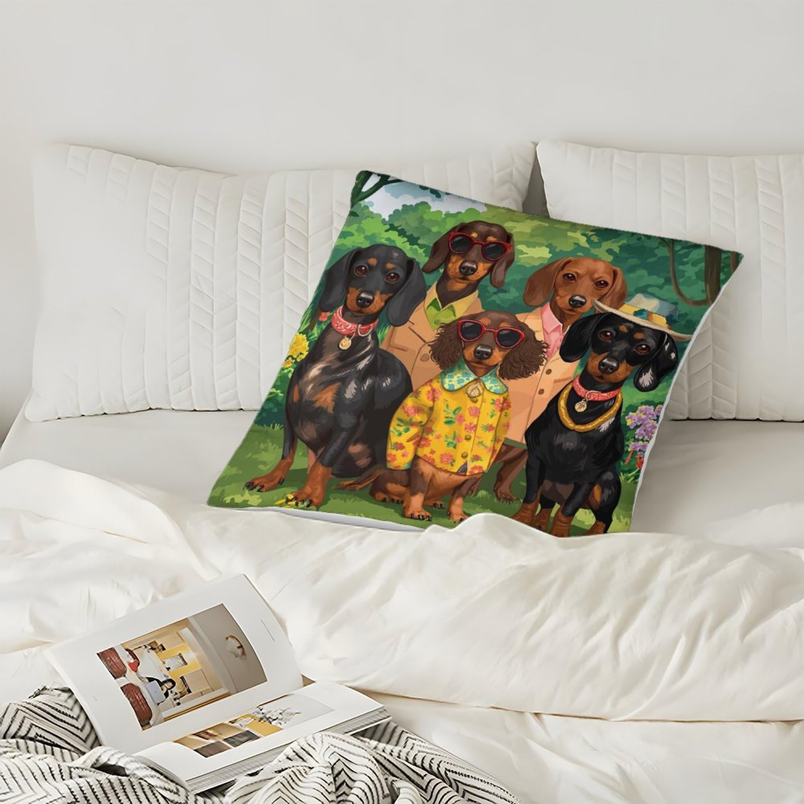 Oh wie süß! Diese Dackel-Kissenbezüge bringen sofort gute Laune ins Wohnzimmer! Im 2er-Set - perfekt fürs Sofa oder Bett! Größe: 40x40 cm - passt auf Standard-Kissen! Aus 100% Polyester - weich und langlebig! Der 3D-Druck ist mega detailgetreu - die Hündchen sehen zum Knuddeln aus! Mit unsichtbarem Reißverschluss - sieht super sauber aus! Maschinenwaschbar bei 30°C - praktisch und pflegeleicht! Die Farben verblassen nicht - bleiben lange schön! Ob im Kinderzimmer, Wohnzimmer oder Büro - überall ein Hingucker! Auch als Geschenk für Hundefreunde super geeignet! Mach deine Couch gemütlich mit diesen niedlichen Dackel-Motiven! Achtung: Nur die Bezüge, keine Kissenfüllung dabei! Hol dir den Hundespaß für dein Zuhause!
