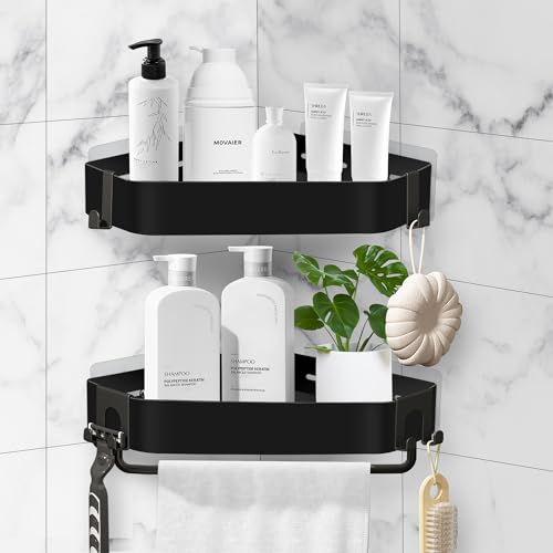 Wisfame Duschablage 2er Set Ohne Bohren - Eckenregal Schwarz 8kg Tragkraft