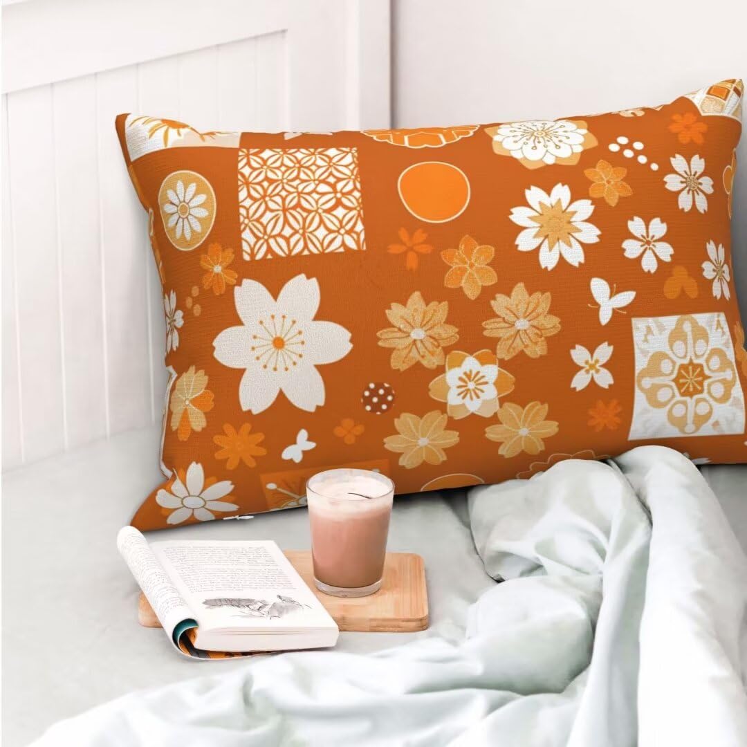 Kissenbezug 40x70 Cm 2er Set Orange - Leinen Bezüge Mit Herbst Muster