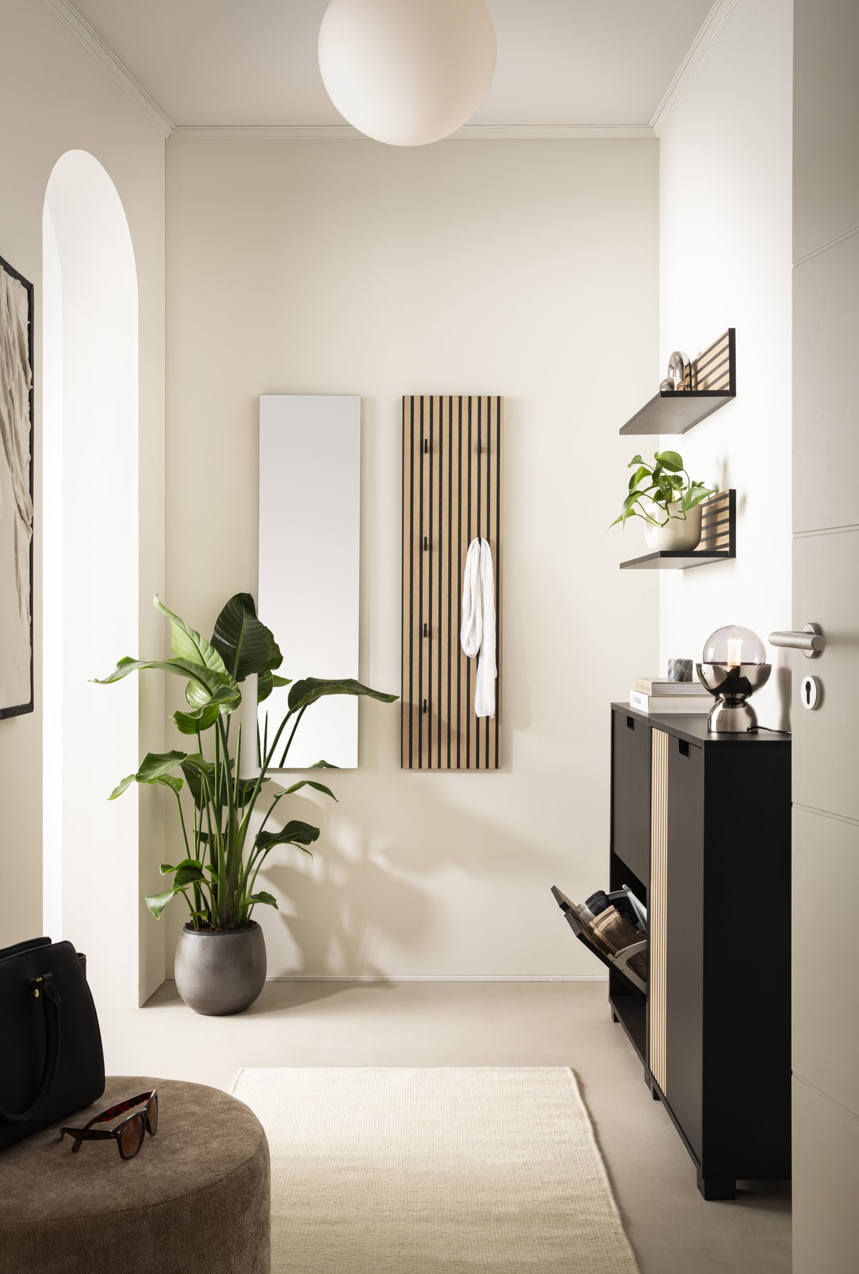Wow, diese Ryker Regale von Schildmeyer machen echt was her! Mit ihrer coolen Akustikplatten-Optik bringen sie modernen Style in deinen Flur oder Wohnbereich. Und das Beste: Es sind gleich zwei Stück im Set!\\n\\nMaße und Details:\\n• Größe pro Regal: 60x17,3x15,7cm (B/T/H)\\n• Farbe: Schwarz matt mit Akustikoptik\\n• Montage: Wandmontage - platzsparend\\n• Made in Germany - Qualität die überzeugt\\n\\nWarum diese Regale super praktisch sind:\\n• Perfekt für schmale Flure - nehmen kaum Platz weg\\n• Stilvolle Aufbewahrung für Schlüssel, Post, Deko\\n• Einfache Montage - mit verständlicher Anleitung\\n• Hochwertige Metall-Beschläge - halten ewig\\n• Vielseitig einsetzbar - auch in Bad oder Kinderzimmer\\n\\nEinfach an die Wand schrauben und schon hast du ordentlichen Stauraum für all die kleinen Dinge, die im Flur immer rumliegen. Die Akustikoptik sieht nicht nur gut aus, sondern verleiht dem Raum auch eine gemütliche Atmosphäre. Qualität aus Deutschland die sich lohnt!