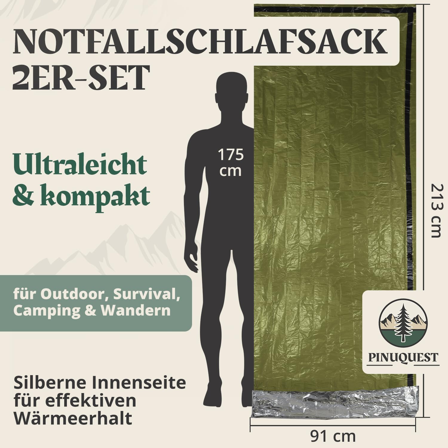 PINUQUEST Notfall Biwaksack 2er-Set - Ultraleicht & Wasserdicht