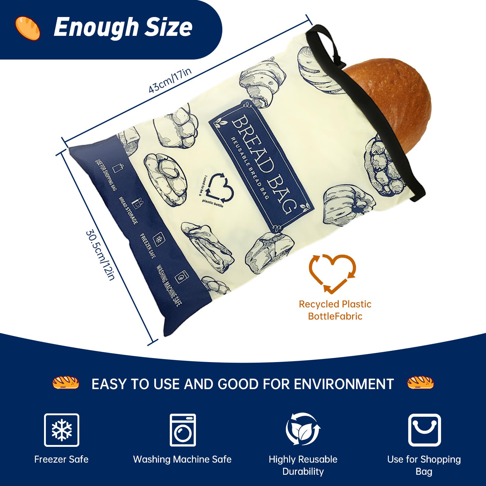 Halte dein Brot länger frisch und lecker! Diese wiederverwendbaren Brotbeutel bestehen außen aus natürlicher Leinenbaumwolle und innen aus lebensmittelechtem, BPA-freiem TPU. Mit den Maßen 30,5x43cm passen selbst große Brote, Baguettes oder Sauerteigbrote problemlos hinein. Der praktische Reißverschluss ermöglicht luftdichtes Verschließen, während die Verschlussclips für platzsparende Aufbewahrung sorgen. Maschinenwaschbar und immer wieder verwendbar - so reduzierst du Plastikmüll! Nicht nur für Brot geeignet, sondern auch für Gebäck, Obst oder als Einkaufstasche beim Bäcker. Ein Must-Have für jede Küche, das deine Backwaren optimal frisch hält. Umweltfreundlich, praktisch und stylisch - was will man mehr?