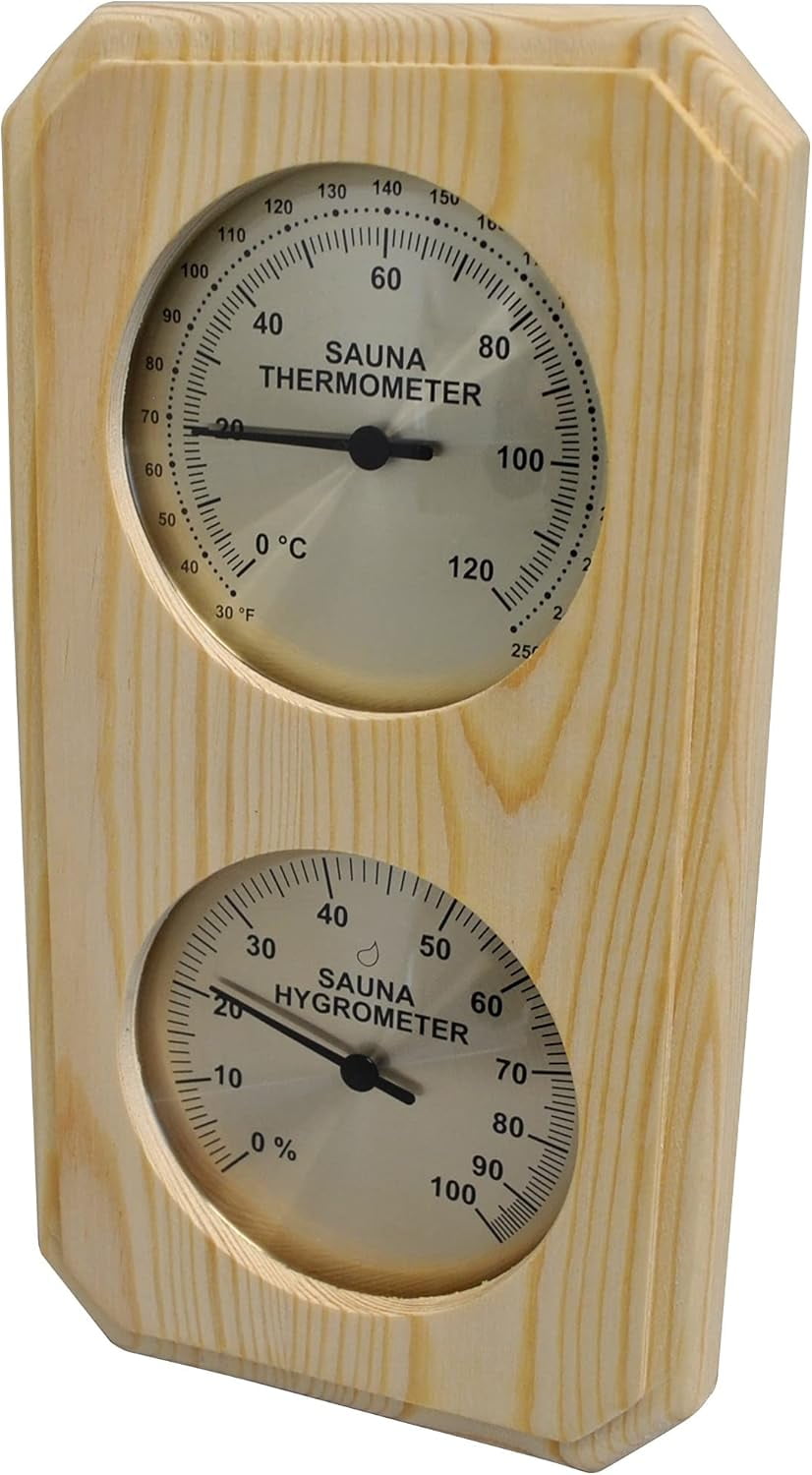 Perfektes Sauna-Zubehör von NORDHOLZ! Dieses 2in1 Thermometer/Hygrometer misst zuverlässig Temperatur und Luftfeuchtigkeit in deiner Sauna. Empfohlen werden 80-90°C für den perfekten Saunagang. Aus Glas und nordischer Fiche gefertigt - hält hohen Temperaturen problemlos stand. Leicht ablesbare Anzeige, am besten in Kopfhöhe auf der obersten Bank montieren. Schafft die ideale Atmosphäre für wohltuende Saunagänge. Passt super zu Sauna und Infrarotkabine. Deutsche Qualität mit Geld-zurück-Garantie. Einfach aufhängen und die perfekte Sauna-Temperatur immer im Blick haben!