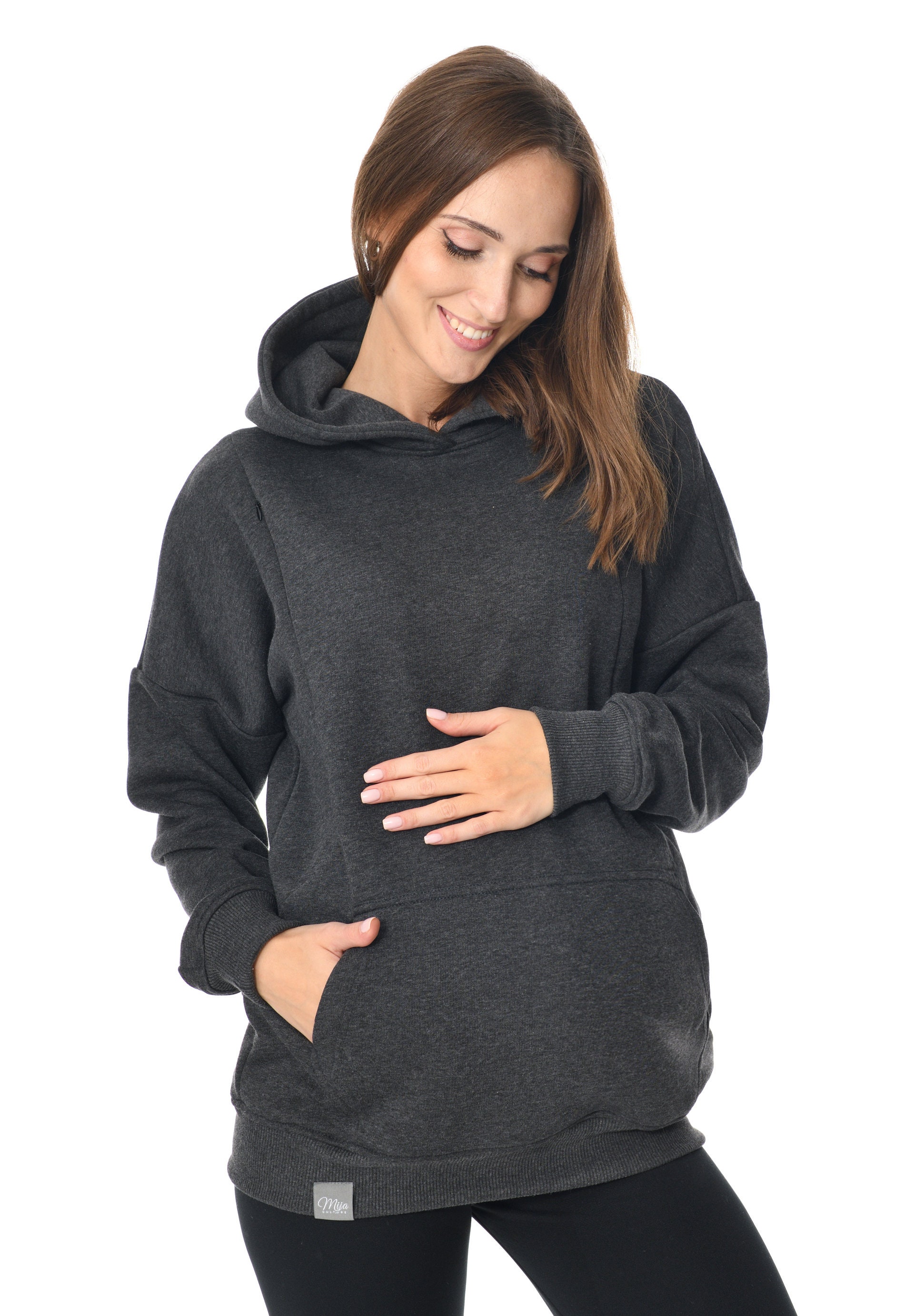 MijaCulture Stillpullover 2in1 - Umstandspullover Mit Kapuze Olivia