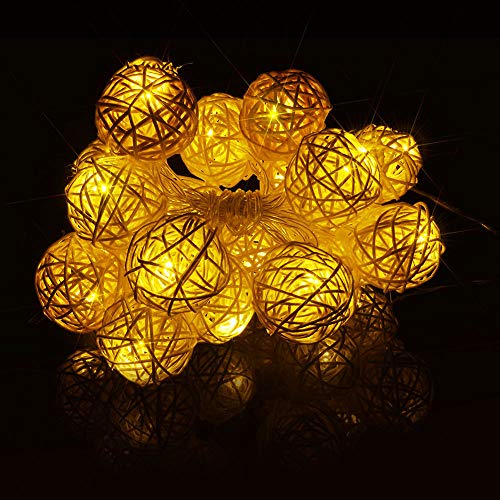 IMIKEYA Rattan Lichterkette 2m - Boho Kugel Lichter Innen Outdoor Warmweiß