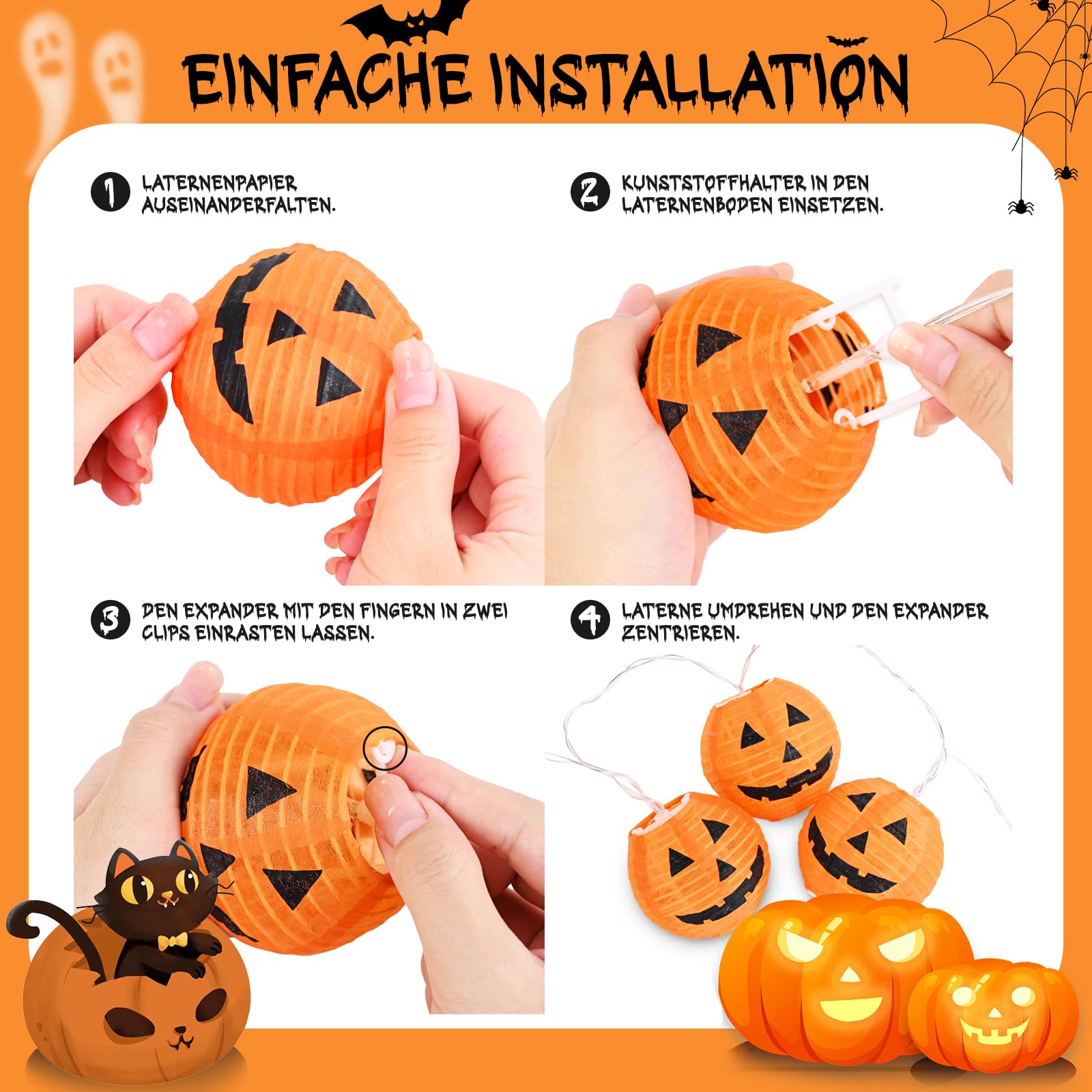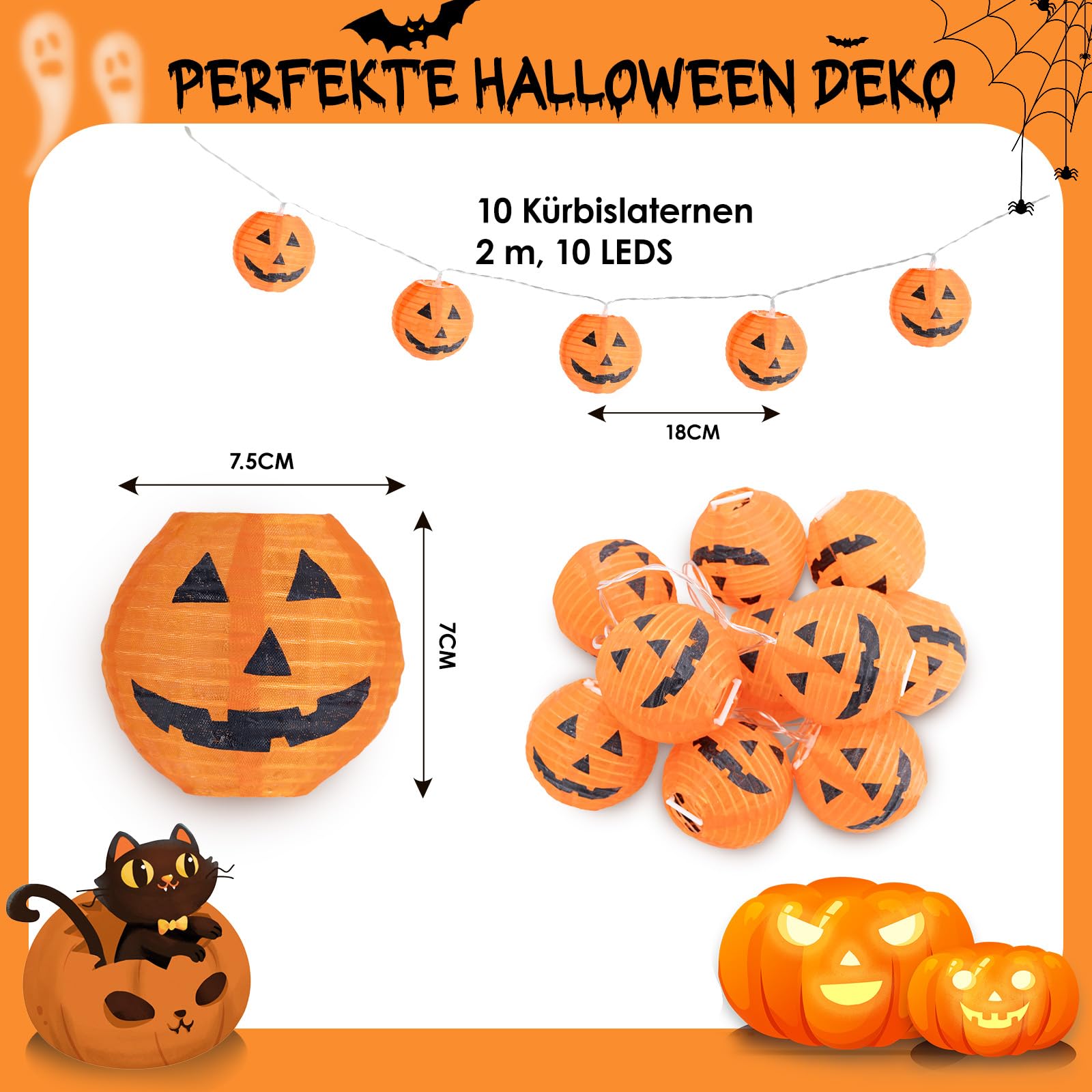 Smilfree Halloween Lichterkette - 2m Kürbis LED Beleuchtung Batteriebetrieben Orange
