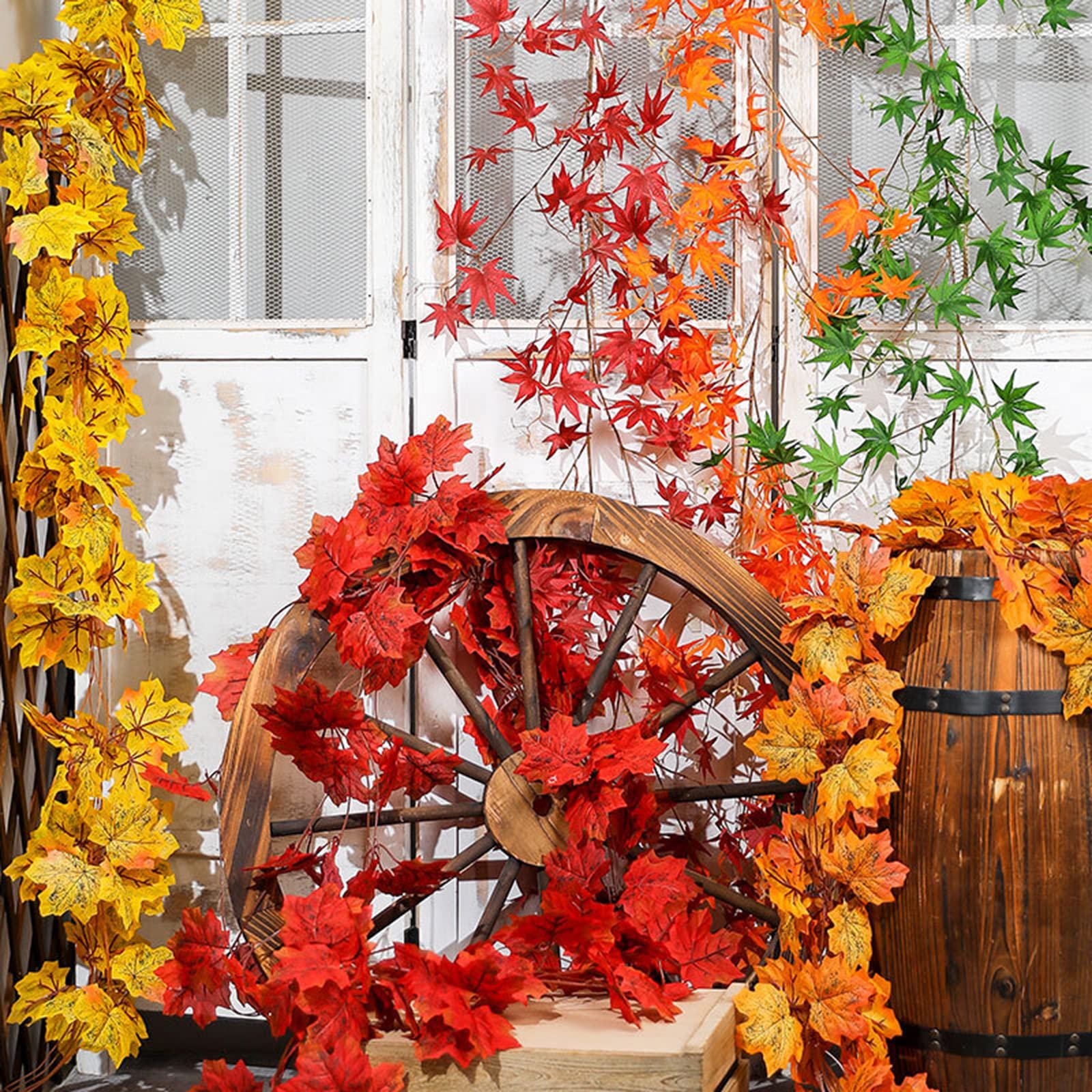 Herbstliche Stimmung für dein Zuhause! Diese beiden Ahornblatt-Girlanden sind je 1,75m lang - zusammen 3,5m Dekospaß! Aus hochwertigem Kunststoff - fühlen sich überraschend weich an und sehen täuschend echt aus. Mit klaren Blattadern und lebendigen Herbstfarben - verblassen nicht. Flexible Ranken - kannst du biegen wie du willst. Mit selbstklebenden Haken - kein Bohren nötig! Perfekt für Türrahmen, Kamin, Treppengeländer oder als Tischdeko. Einfach die beiden Girlanden verweben für mehr Fülle. Bringt sofort gemütliche Herbststimmung in jeden Raum. Saison für Saison wiederverwendbar - gut investiertes Geld!