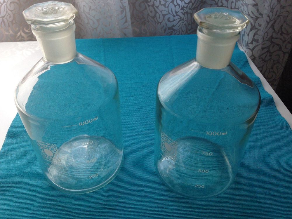 2x 1000ml Weithals-Reagenzflaschen Aus Kunststoff - Mit Schraubverschluss Für Labor & Hobby
