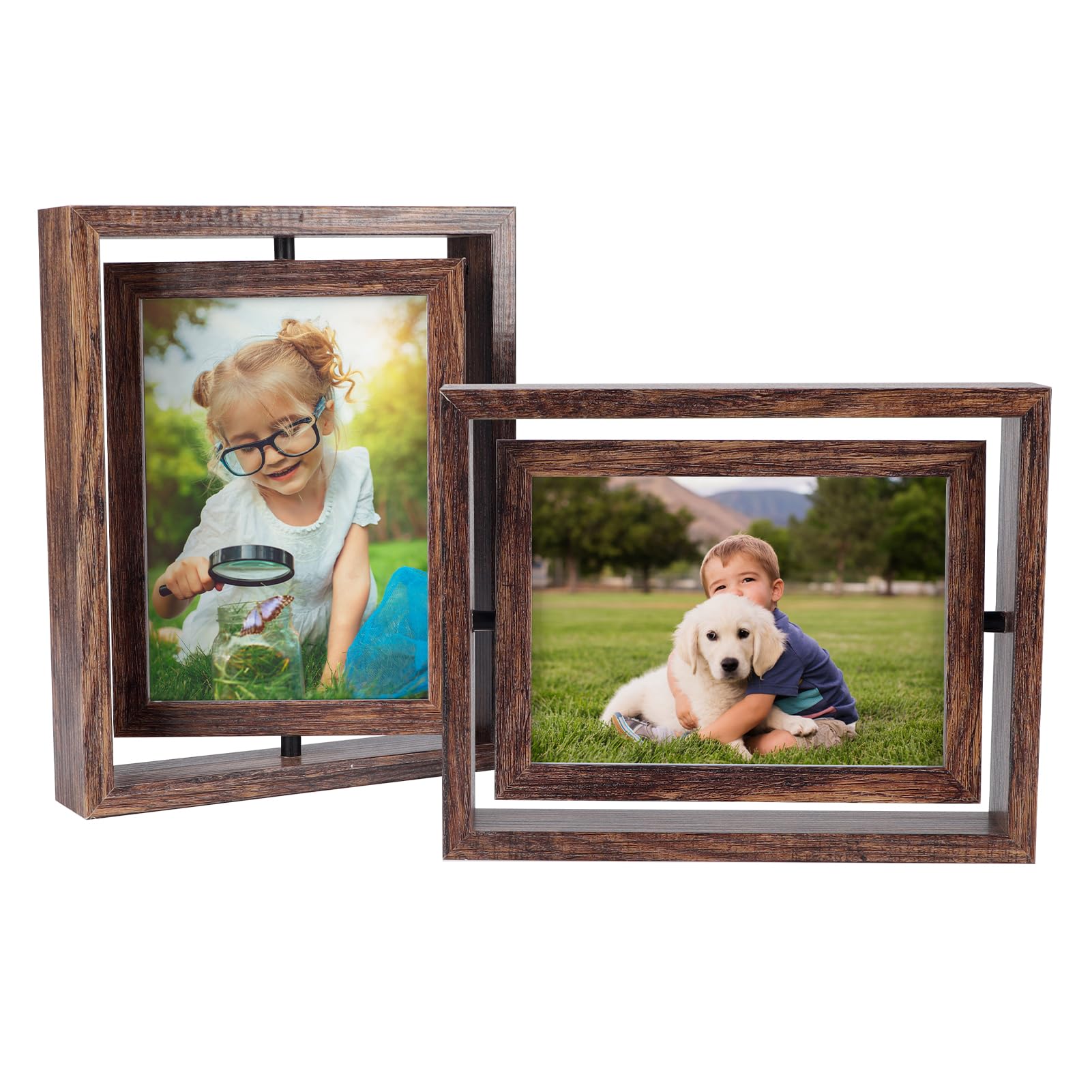 2x Drehbare Bilderrahmen 17,8 Cm - Doppelseitig Mit Glas Für Tischdisplay
