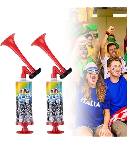 Achtung, laut! Diese beiden Druckluft-Hupen bringen 110 dB Soundpower - perfekt um bei Sportevents, Partys oder auf dem Boot Aufmerksamkeit zu erregen. Aus robustem ABS-Kunststoff und Metall, extrem langlebig und wiederverwendbar. Kein Gas oder Strom nötig, einfach drücken und los geht's! Mit 21x13x7,5 cm kompakt genug für jeden Rucksack. Ideal für Fußballspiele, Konzerte, Camping oder als Signalgeber bei Nebel. Aber Vorsicht: Niemals direkt am Ohr betätigen - das ist wirklich extrem laut! Die rote und blaue Hupe im Set sind perfekt für alle, die gerne lautstark feiern oder im Notfall auf sich aufmerksam machen müssen. Ein echter Stimmungsmacher für jede Gelegenheit!