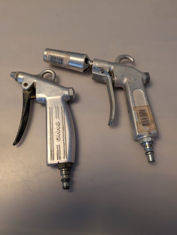Die Pistolen bestehen aus robustem Metall und halten auch stärkerem Luftdruck stand. Die langen Düsen (10cm) erreichen auch schwer zugängliche Stellen – perfekt zum Entfernen von Staub, Spänen und anderen Verschmutzungen.