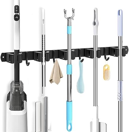 Yuecuu Besenhalterung Wand - 2x Edelstahl Mit 5 Haltern & 4 Haken | Für Garage & Haushalt