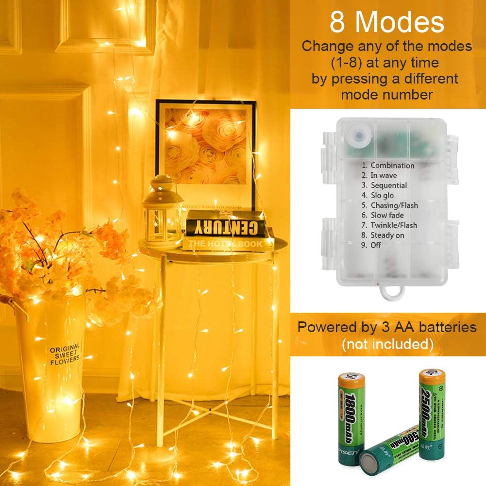 Diese LED Lichterketten sind einfach magisch! Im 2er-Pack bekommst du doppelten Beleuchtungsspaß für drinnen und draußen.\n\nJede Lichterkette hat:\n- 5 Meter Länge mit 50 LEDs\n- 8 verschiedene Lichtmodi\n- Timer-Funktion (6h an, 18h aus)\n- 8 Helligkeitsstufen\n- Wasserdicht IP65\n\nDer flexible Kupferdraht lässt sich super einfach um Pflanzen, Geländer, Möbel oder in Vasen formen. Perfekt für:\n- Garten und Terrasse\n- Schlafzimmer Deko\n- Partys und Feiern\n- Weihnachtsdekoration\n- Balkon und Wohnung\n\nBatteriebetrieben (3x AA, nicht im Lieferumfang) - also komplett kabellos! Mit Fernbedienung für bequeme Steuerung. Die Memory-Funktion merkt sich deine letzte Einstellung. Einfach aufhängen, Batterien rein und den Zauber genießen!