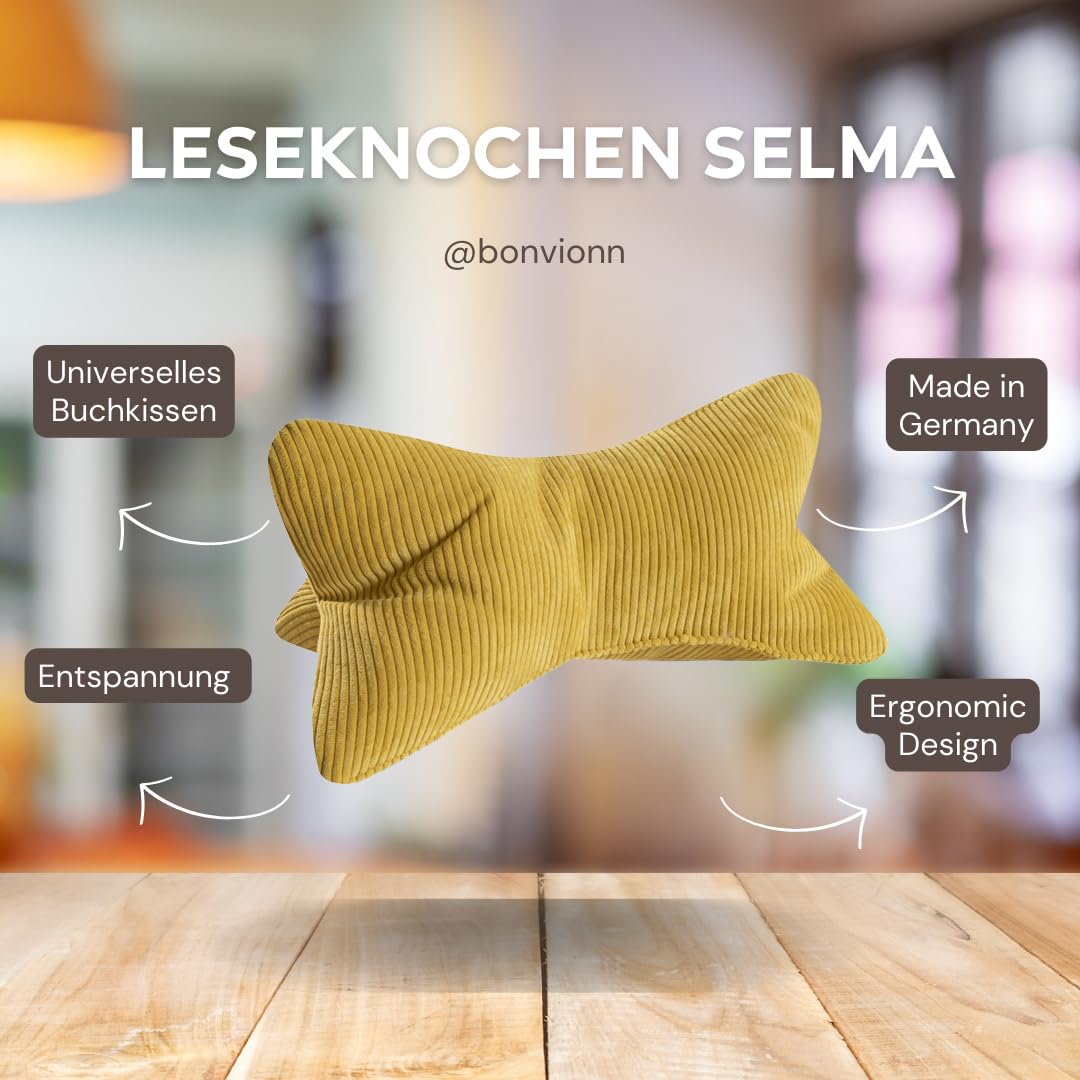 Perfekt für alle Leseratten! Diese beiden Leseknochen im dezenten Cord-Look sind deine besten Freunde beim gemütlichen Lesen im Liegen. Mit den Maßen 42x22 cm passen sie sich super an deinen Nacken an oder halten dein Buch, E-Reader oder Tablet sicher in Position. \\n\\nDer weiche Bezug aus 88% Polyester und 12% Polyamid fühlt sich richtig kuschelig an, und die Füllung aus 100% Polyester gibt nach, ohne komplett zusammenzusacken. Einfach bei 30°C in der Maschine waschen - aber bitte nicht in den Trockner! \\n\\nMade in Germany und in trendigen Farben wie Natur, Salbei und Mittelgrau erhältlich. Super als Geschenk für Lesefreunde, zum Muttertag, Geburtstag oder einfach so. Mit diesen Leseknochen wird jede Lesesession zum puren Komfort-Erlebnis!