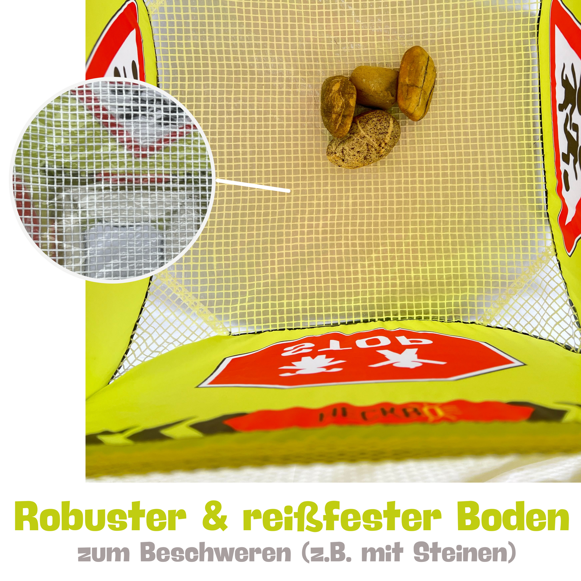 Für alle Eltern, die ihre Kinder schützen wollen: Dieses HECKBO Pylonen-Set ist genial! Zwei neon-grüne Warnwürfel mit 360° Reflektoren - auch in der Dämmerung super sichtbar. Mit 64cm Höhe werden die von Autofahrern nicht übersehen. Das Pop-Up-System ist mega praktisch: Sekundenschnell aufgebaut und platzsparend verstaut. Inklusive 2 Meter Wimpelkette für eine richtige Absperrung. Perfekt für Einfahrten, Spielstraßen oder den Garten. Die Unterseite hat ein robustes Netzgewebe und kann mit Sand beschwert werden - also standsicher auch bei Wind. Aus reißfestem Polyester, wetterfest und langlebig. Einfach aufstellen und du weißt, dass deine Kinder sicher spielen können. Ein Muss für jede Familie mit kleinen Kindern!