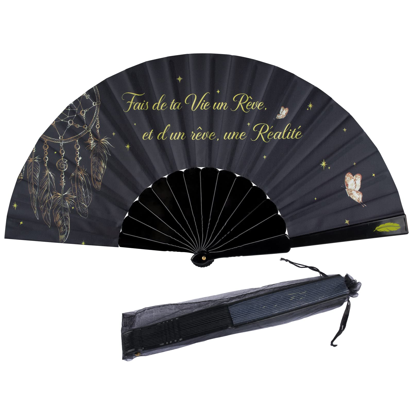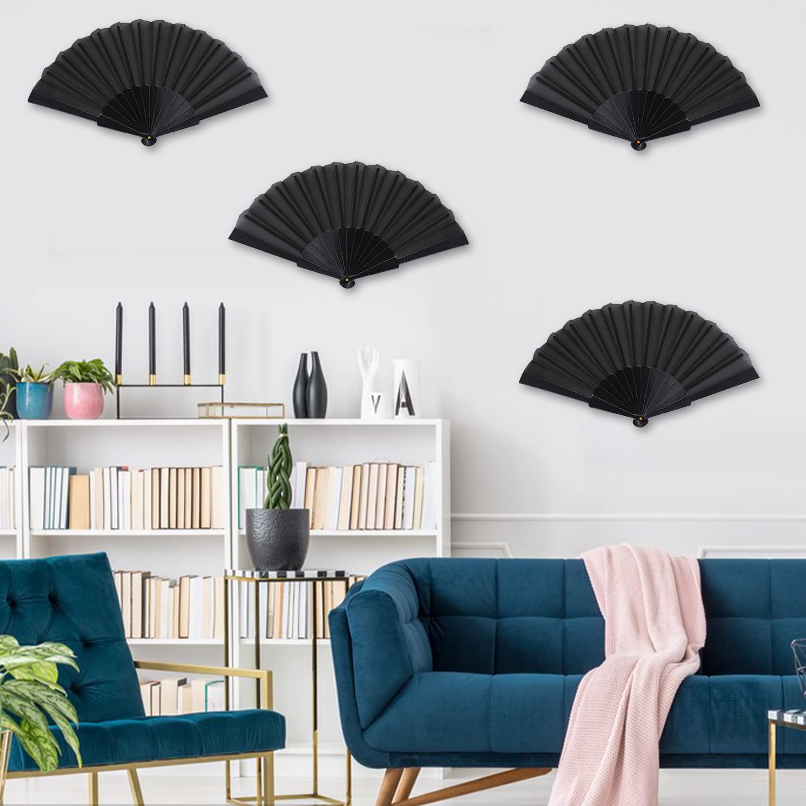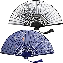 Diese Faltfächer sind nicht nur praktisch, sondern auch richtig schön! Hab sie für meine Tanzgruppe gekauft und alle sind begeistert.\n\nMaterial: Satin-Seide & Bambus\nGröße geschlossen: 21cm Höhe\nGröße geöffnet: 38cm Breite\nFarbe: Tiefschwarz\n\nDie Verarbeitung ist echt hochwertig. Der Bambus ist fein geschnitzt und die Seide fühlt sich luxuriös an. Klappt super smooth auf und zu - kein Knacken oder Klemmen.\n\nBesonders praktisch: Wenn zusammengeklappt sind sie nur 1cm dick - passen in jede Handtasche! Perfekt für heiße Sommertage, Konzerte oder Festivals.\n\nAber sie können mehr als nur kühlen! Wir nutzen sie als Tanz-Requistiten und sie sehen an der Wand auch als Deko mega aus. Für Hochzeiten oder Mottopartys einfach perfekt.\n\nIm Set sind 2 Stück - ideal zum Verschenken oder eines für sich behalten. Meine Schwester hat ihren für ihre asiatische Hochzeit benutzt - kam super an!\n\nFür den Preis absolut unschlagbar! Sieht aus wie teure Designer-Stücke, kostet aber nur einen Bruchteil. Ob zum Tanzen, Dekorieren oder einfach nur zum Abkühlen - diese Fächer rocken!