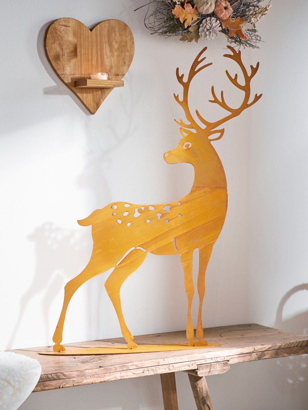 Dekoleidenschaft Rentier Figuren Set - 2x Weihnachtsdeko Aus Mangoholz & Metall