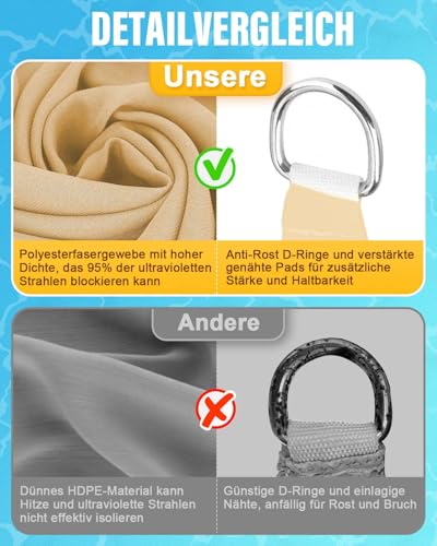 Sonnensegel 2x3m HDPE - UV-Schutz 98% Wasserdicht Mit Ösen & Befestigungsseilen